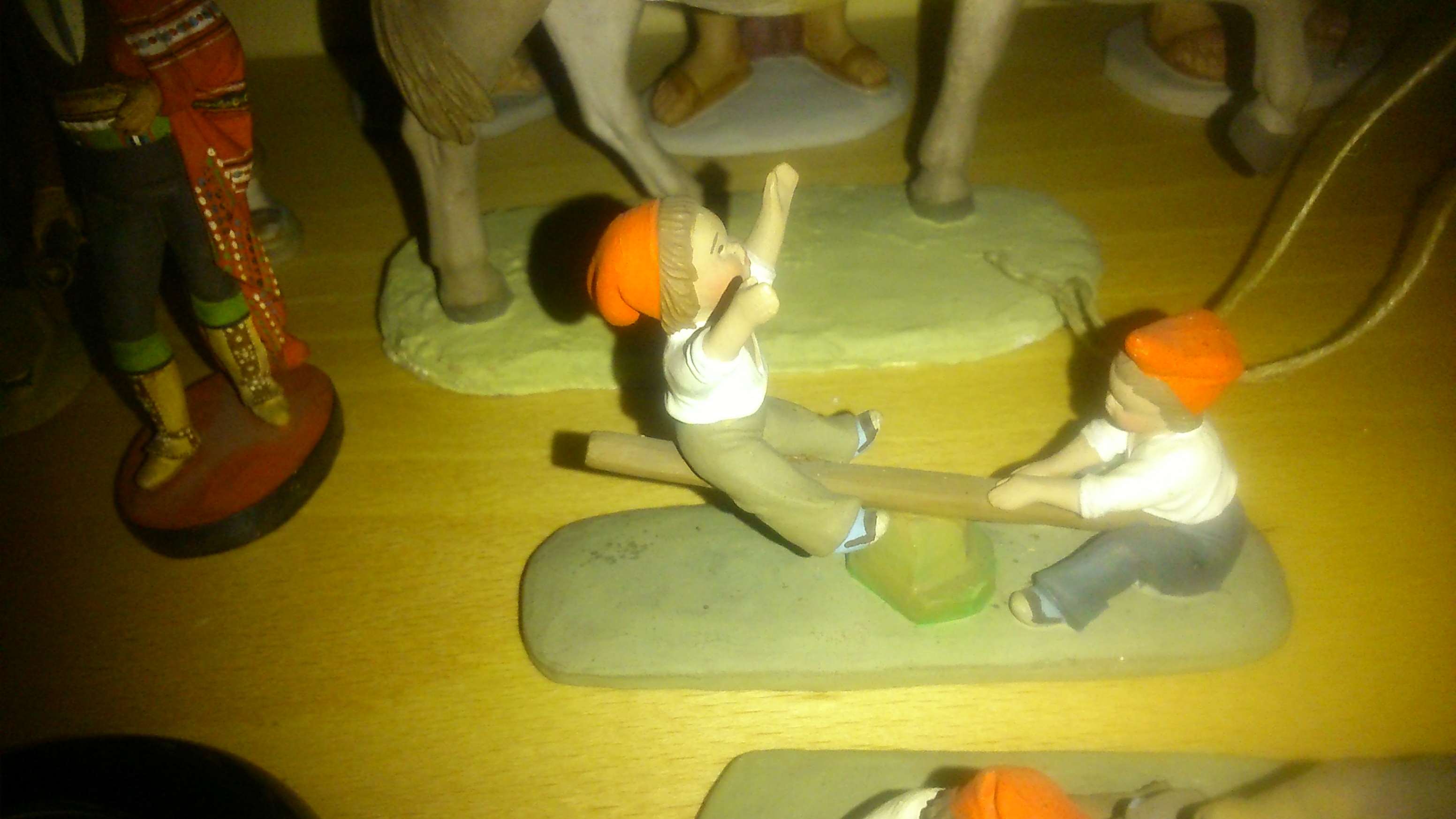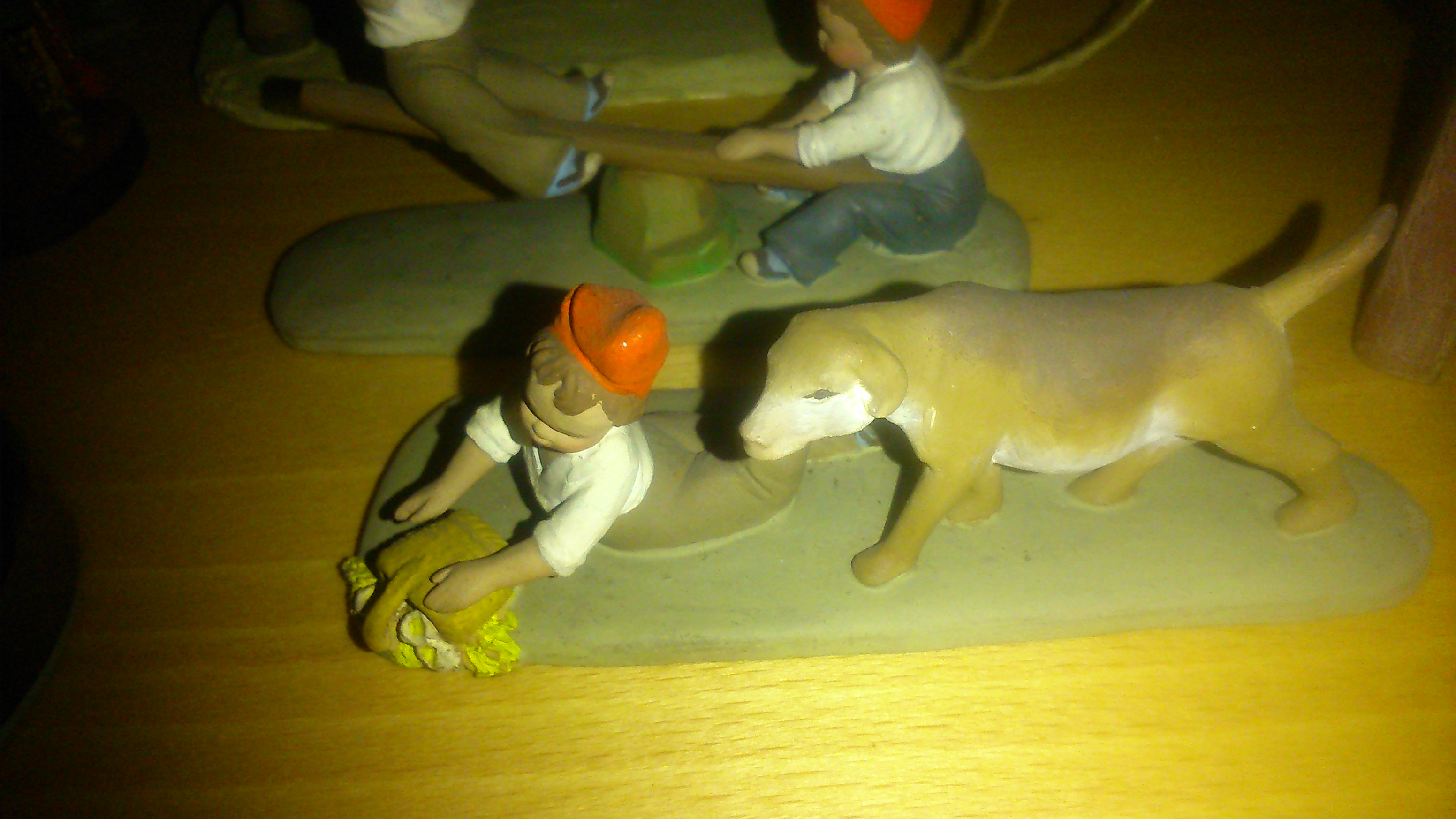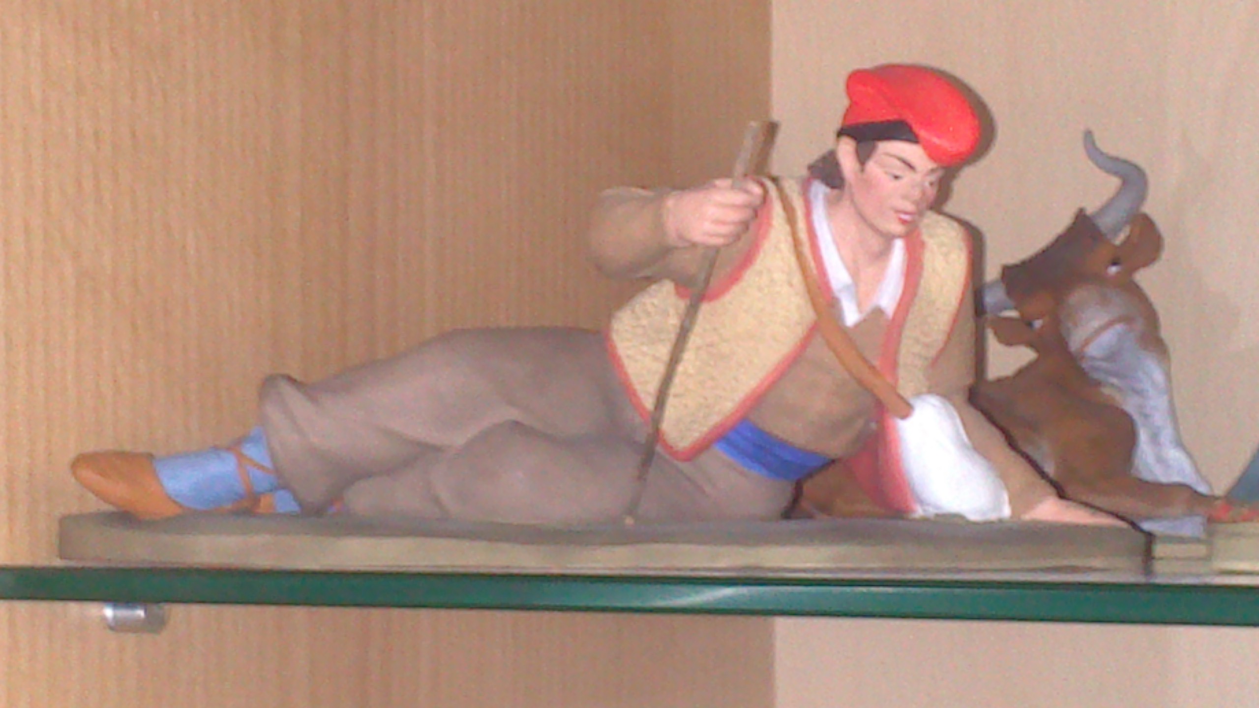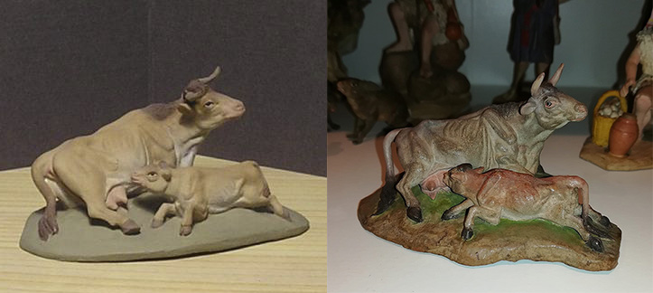 "Además del pintado...En la reproducción de esta figura Carratalà únicamente ponía tres patas de la vaca, la que hay entre ella y el ternero no la hacía. Masdéu si, no olvidaba ningún detalle. Carratalà ponía al ternero cercano a la ubre, Masdéu directamente mamando de ella. Las patas del ternero Masdéu las hacia mínimas y muy definidas. Carratalá algo más gruesas. Y para rizar el rizo, Masdéu siempre definía muy bien la anatomía de los animales, incluso sus genitales. Carratalá lo matizaba más."