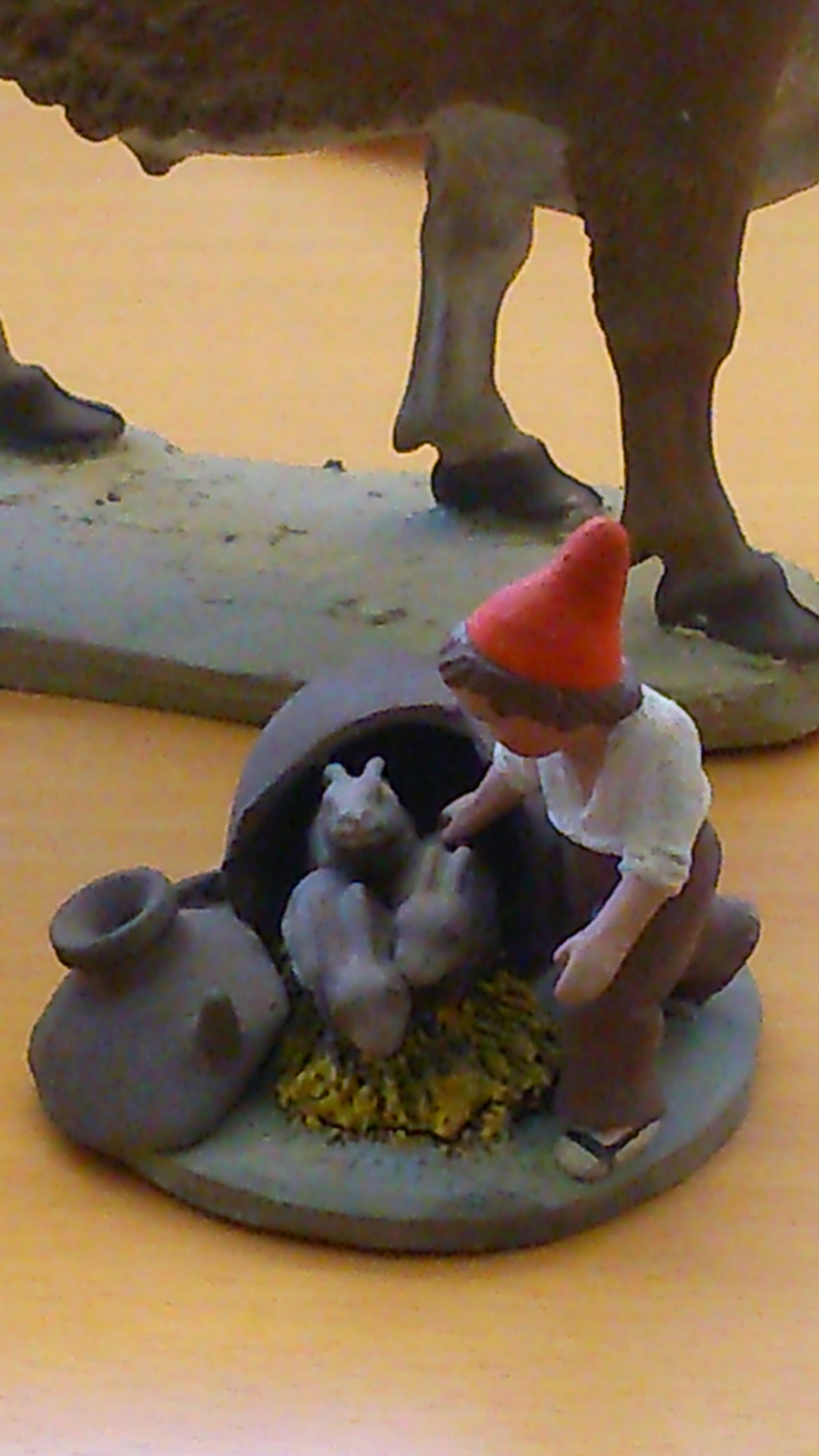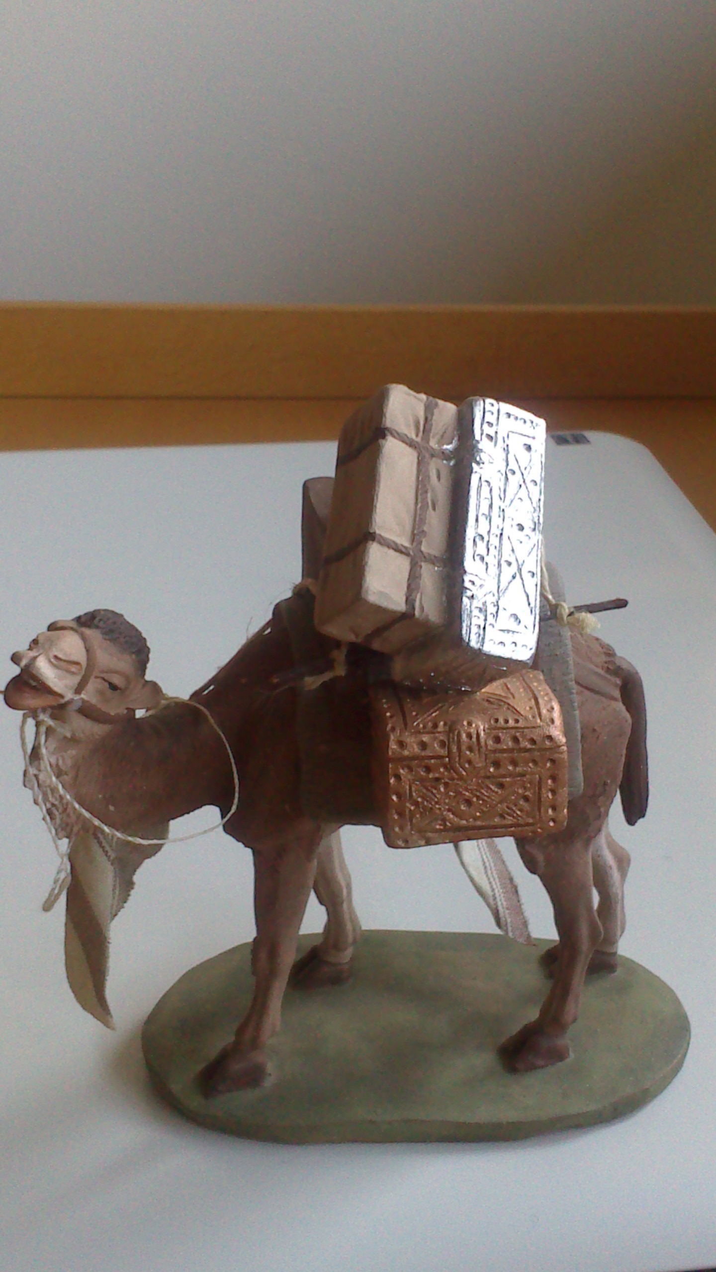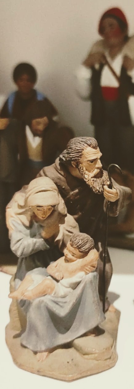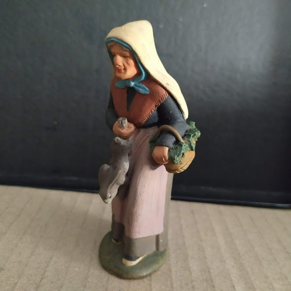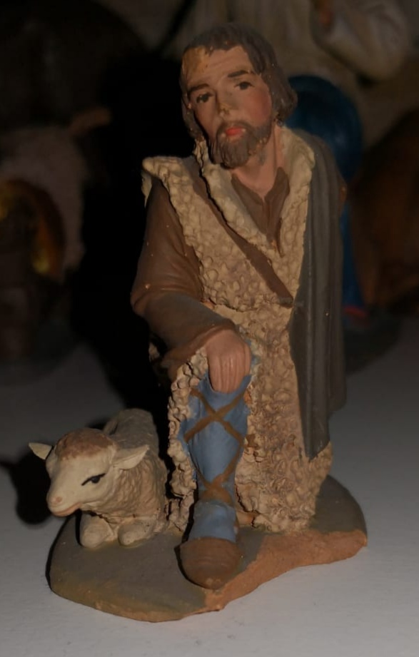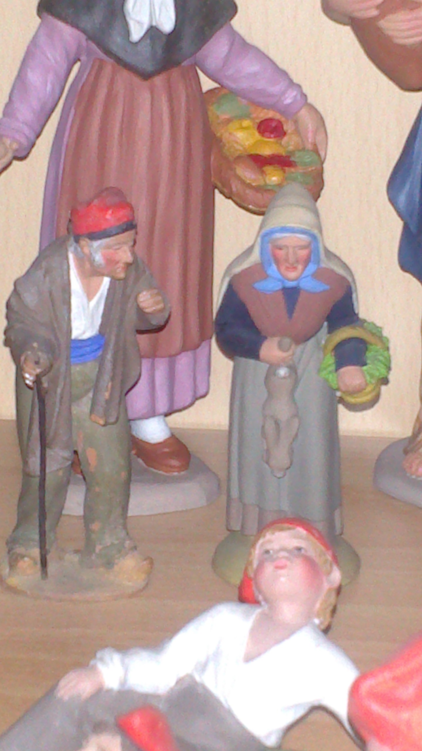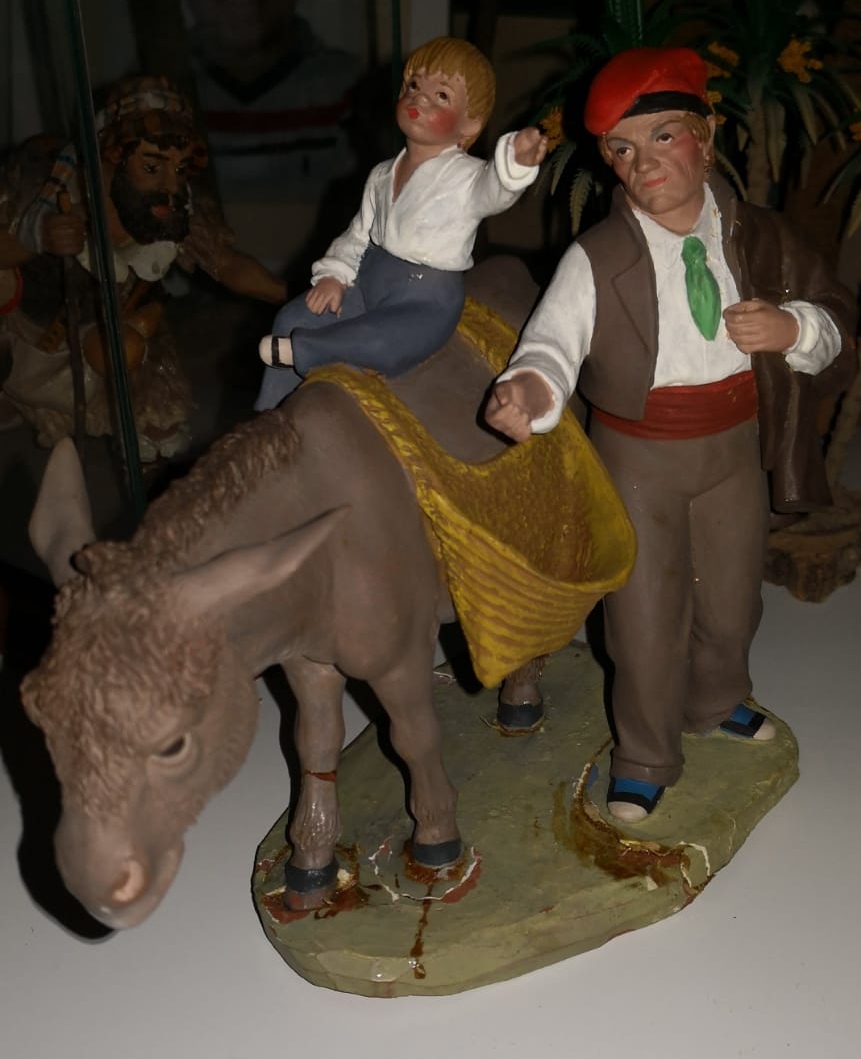 La figura es de aprox. 9cms., es maravillosa no sólo por el detalle en justa medida a su (aparente) tamaño también por la belleza y sentimiento que desprende y que mejora a la lámina(en mi opinión), aparte es muy versátil para un belén puede estar en una huida como en un nacimiento.