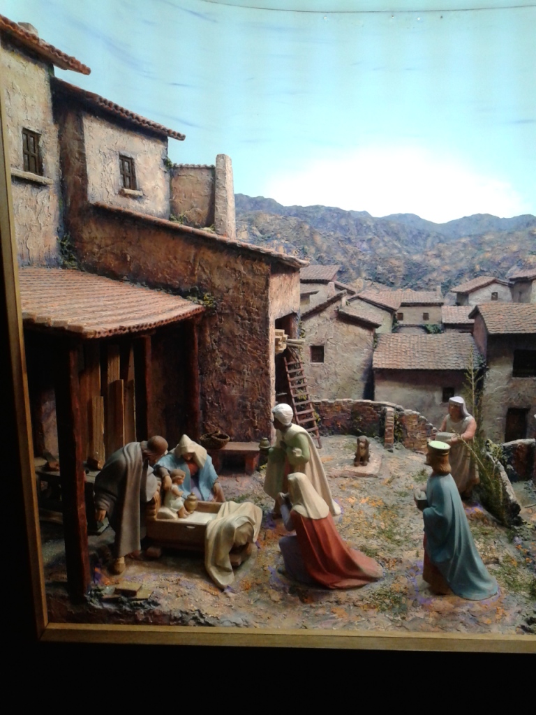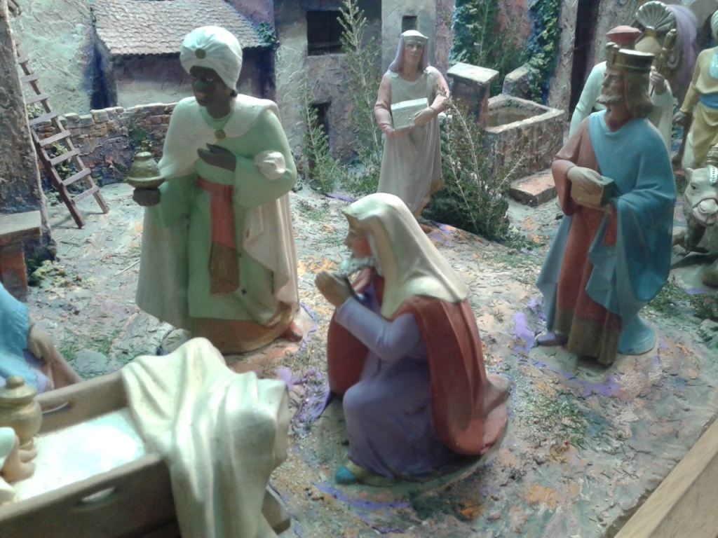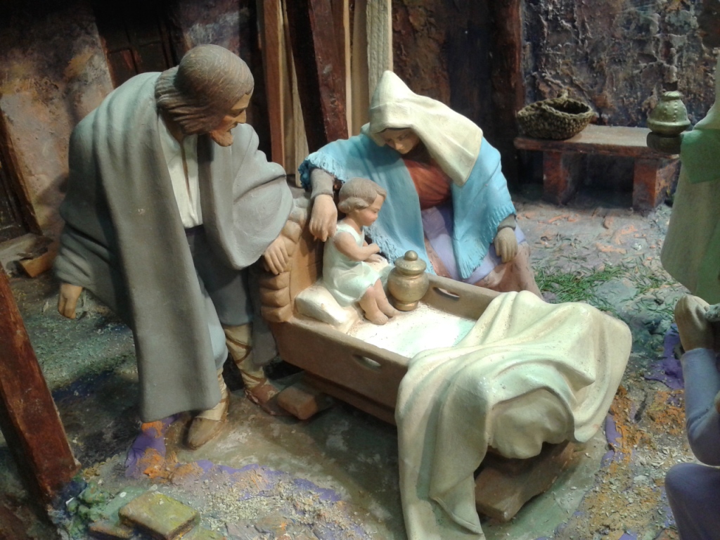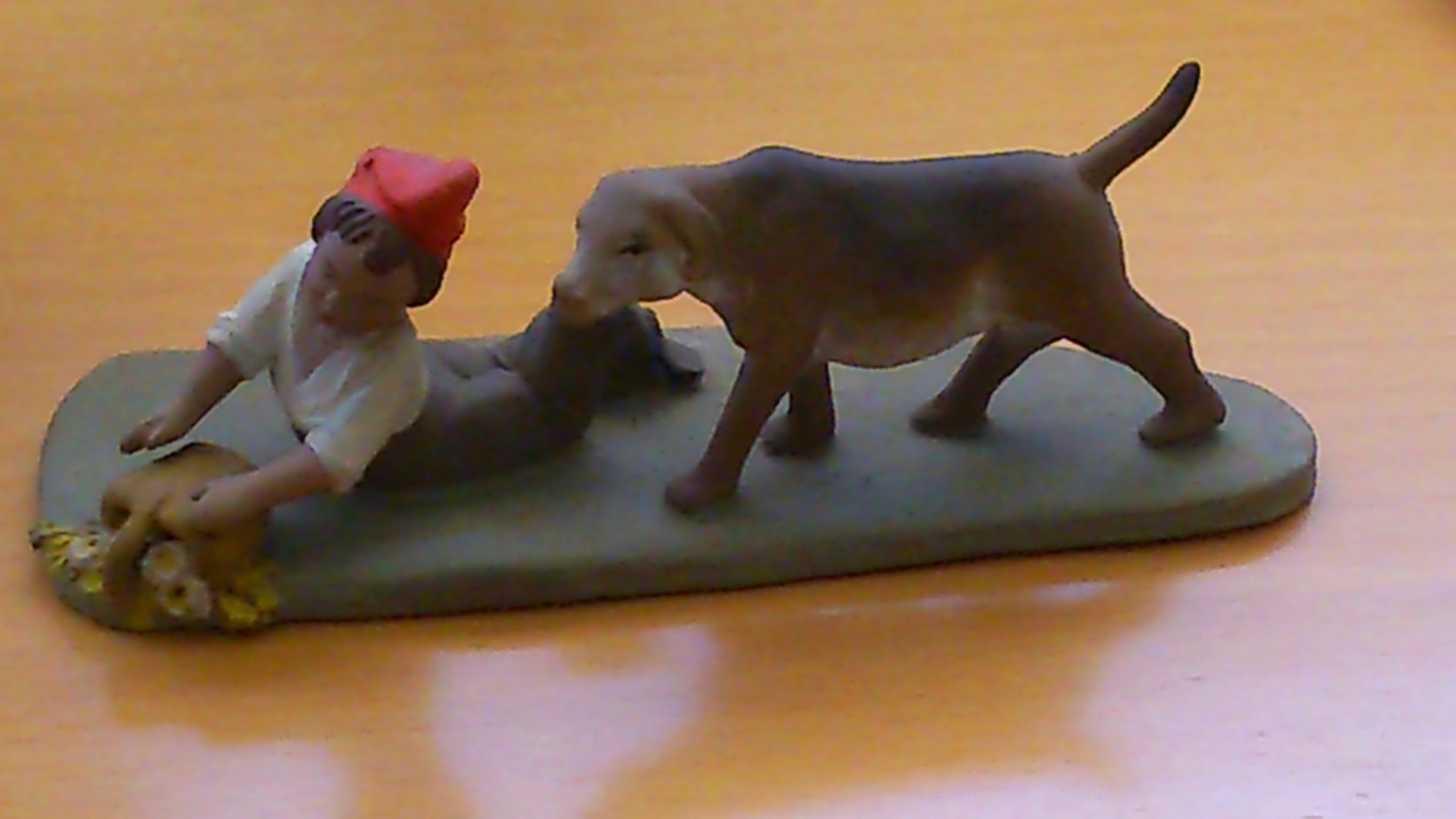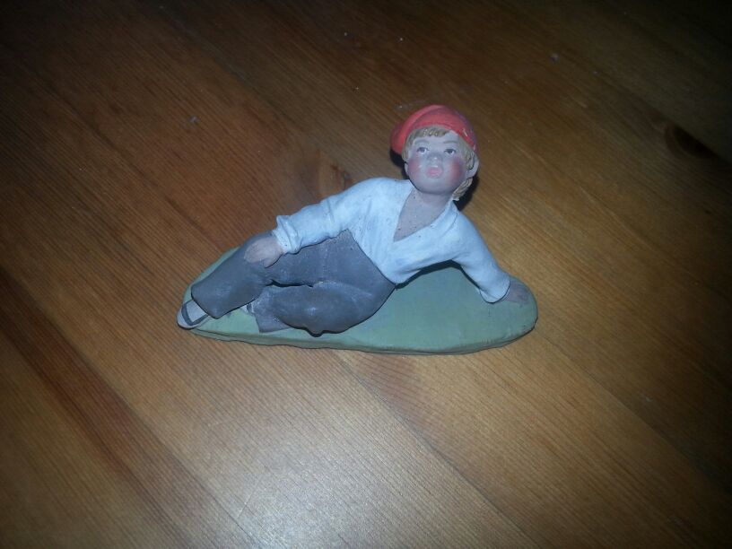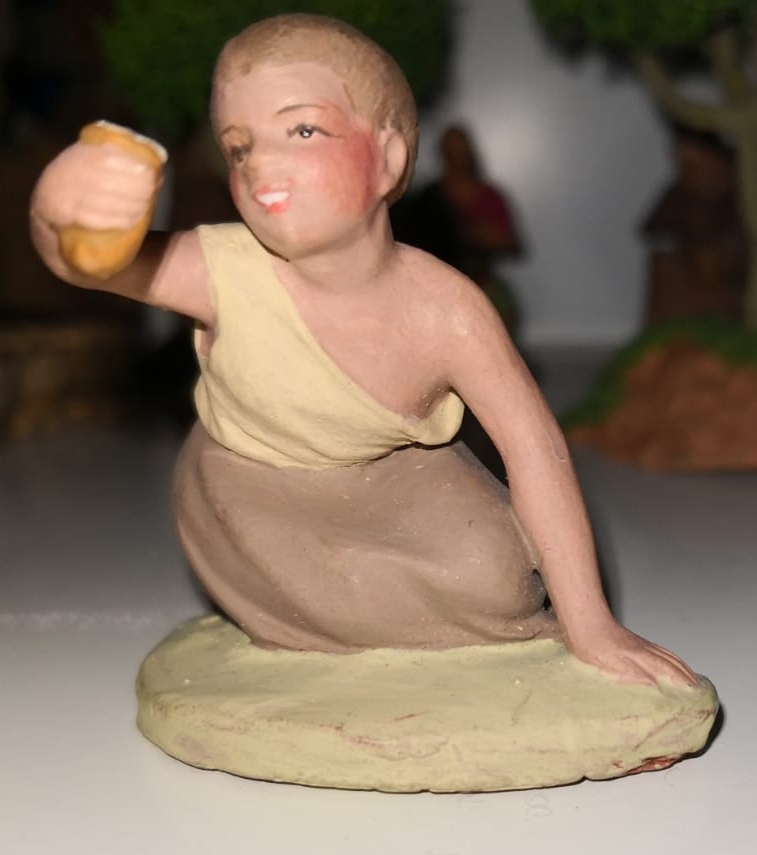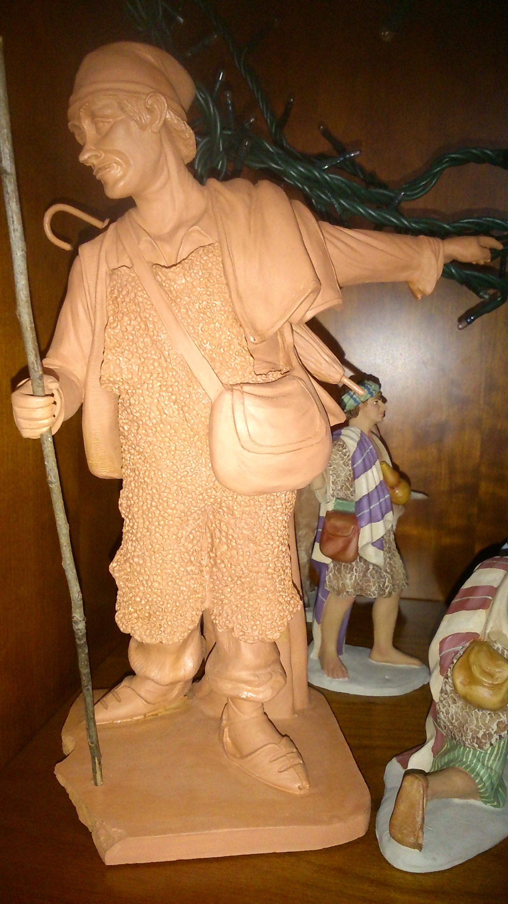 La figura es de aprox. 9cms., es maravillosa no sólo por el detalle en justa medida a su (aparente) tamaño también por la belleza y sentimiento que desprende y que mejora a la lámina(en mi opinión), aparte es muy versátil para un belén puede estar en una huida como en un nacimiento.
