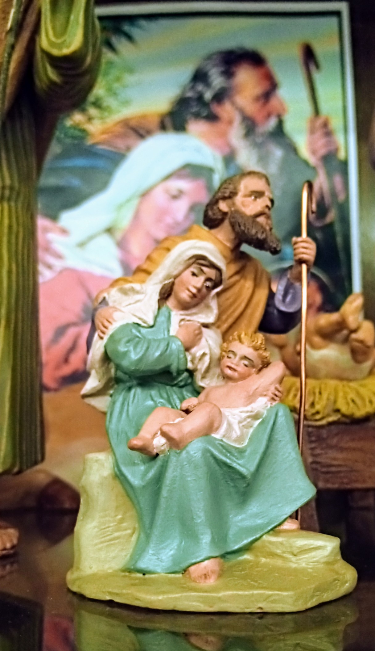 La figura es de aprox. 9cms., es maravillosa no sólo por el detalle en justa medida a su (aparente) tamaño también por la belleza y sentimiento que desprende y que mejora a la lámina(en mi opinión), aparte es muy versátil para un belén puede estar en una huida como en un nacimiento.