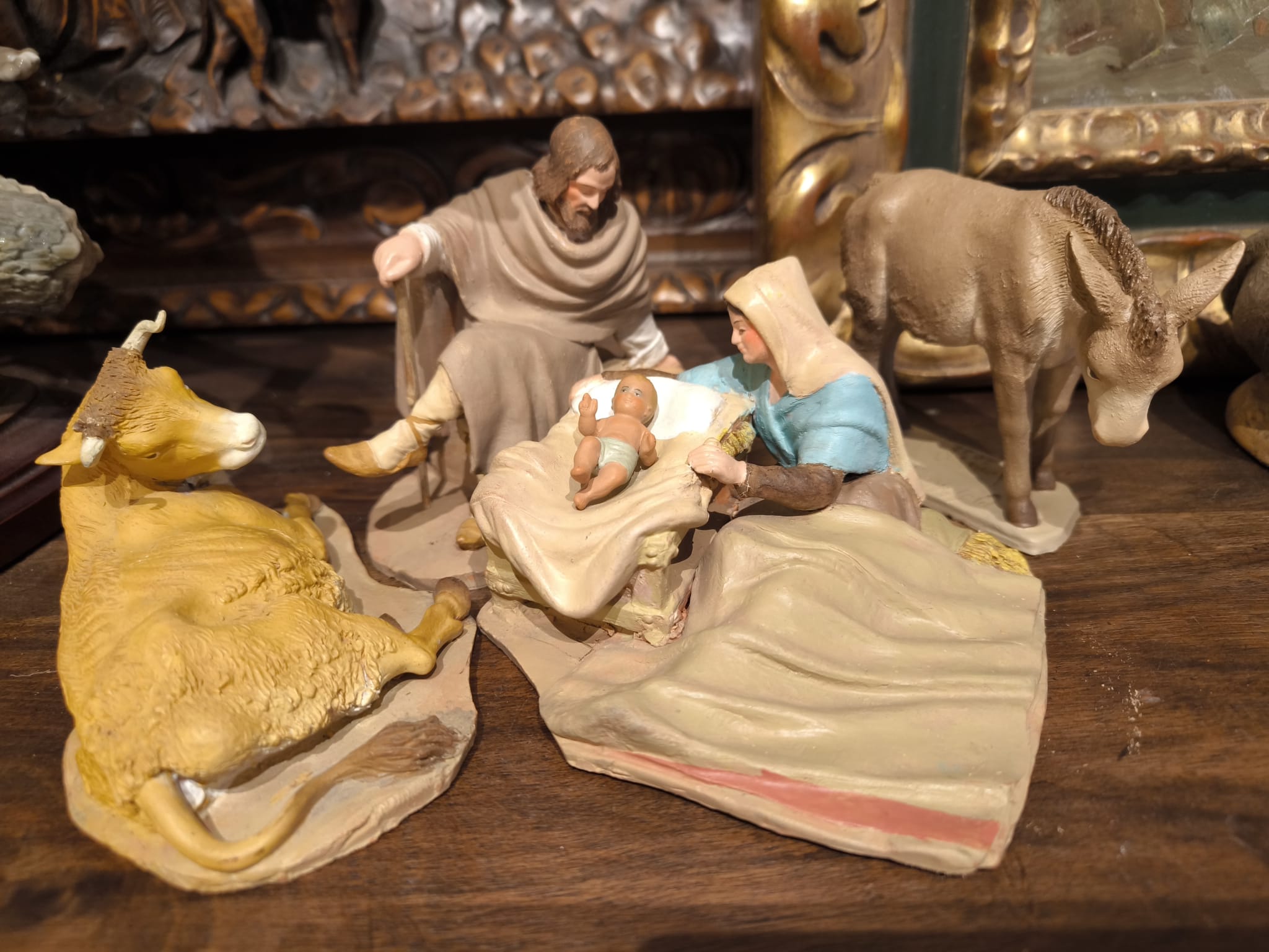 En un lote me llegaron, además de una Virgen y un San José, una viejecita muy típica. A la Sagrada Pareja la ubiqué en escenas como la Presentación ante los sabios o El Niño perdido, opciones perfectamente válidas. Sin embargo, según recoge Enric Benavent en su libro Lluís Carratalà, escultor noucentista de belenes , en realidad corresponde a la escena de Buscando posada.