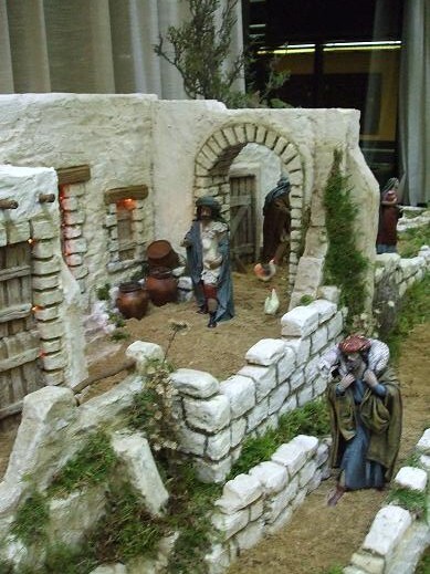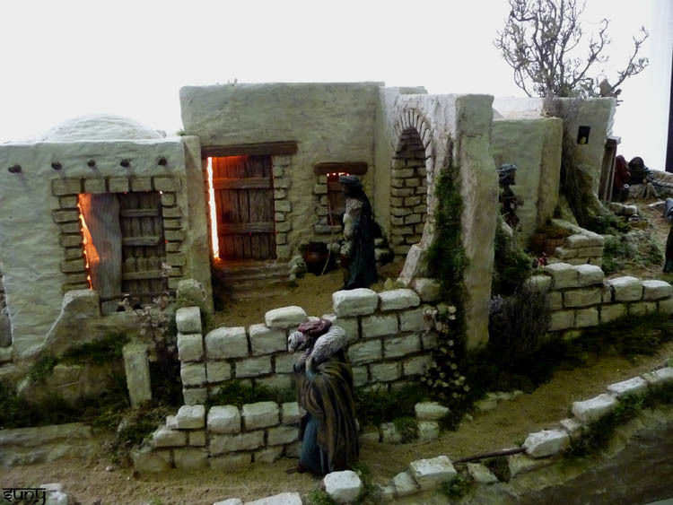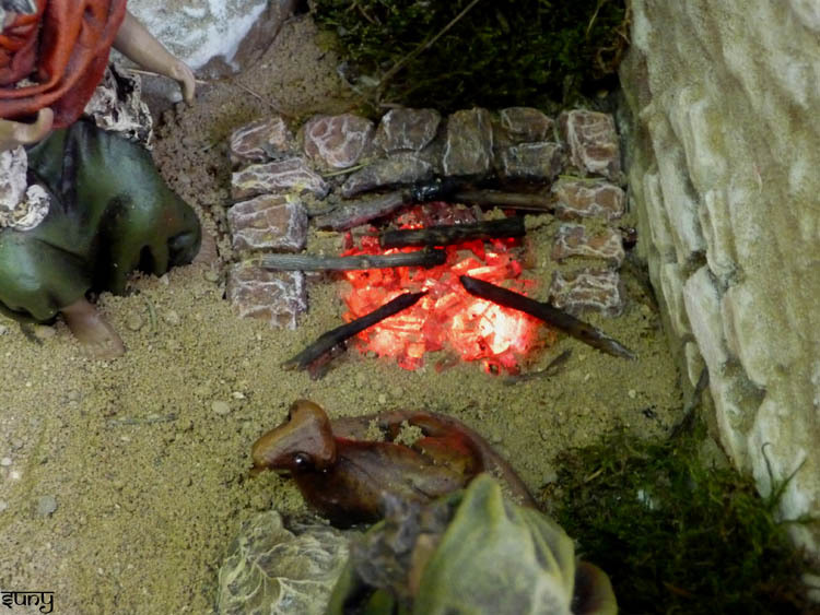 Precioso belén, con tan poco espacio que buen planteamiento habeis hecho, está cargado de rincones lindos, como la anunciación, la hoguera tan real, las construcciones fantasticas, y las figuras enteladas, que si estqan bien hechas, como éstas, son una preciosidad. Enhorabuena por vuestro trabajo, uno como éste si cabe en mi casa, pero me falta lo más importante, la maestria para hacerlo tan bello. Saludos