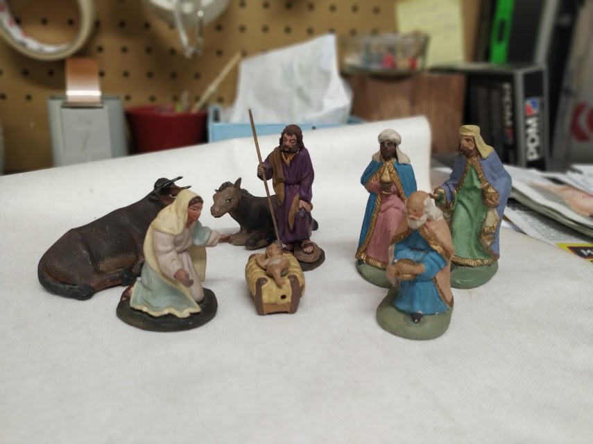 Nacimiento de 11 cm con palillos de M Castells en diorama original firmado por Moliné i Bofill