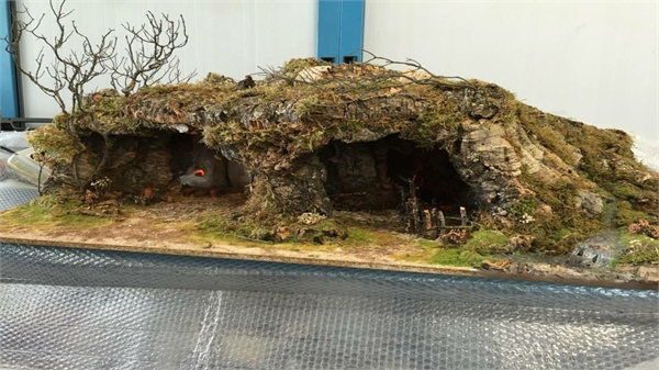 A) Vista frontal general del belén, independientemente de si se trata de un diorama o un belén abierto. En el caso de estos, la vista general deberá ser tomado del lado en que se encuentre el Misterio.