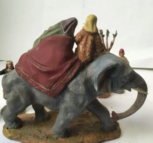 ¿Y por qué me lleva a pensar en la producción de Ortigas, en su fábirca ya cerrada hace más de 30 años? Pues porque en estas figuras de barro policromado, en esta represenatción instantanea de los Magos acercándose al portal, se ha parado el tiempo de una producción fastuosa y célebre de uno de los grandes maestros del belenismo murciano.