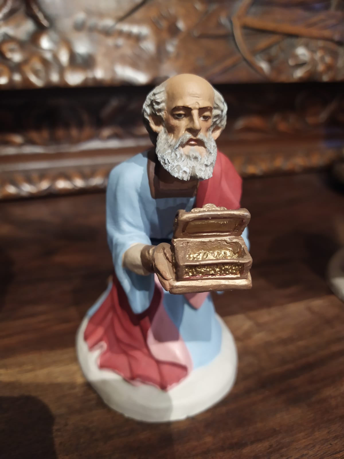 Aunque si encontré un precedente que como representante del orientalismo (con influencias del romanticismo) y precursor de éste tipo de figuras de belén en un Melchor de Doménech Talarn i Ribot donde el cofre no solo está abierto sino que rebosa monedas de oro.