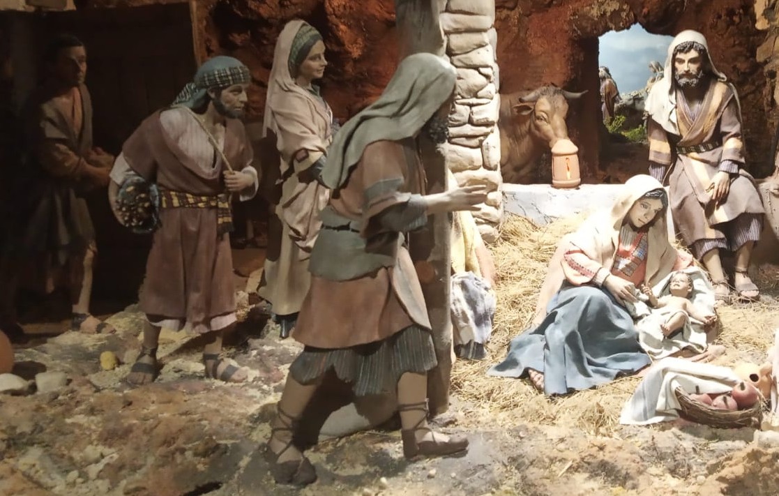 Detalle del Belén (2020) en la Iglesia de San Miguel en Madrid con figuras (de las primeras...) de Mayo