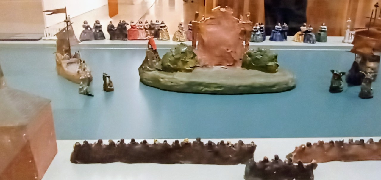 Curioso esbozo de maqueta de parte de ciudad que tambien retrataba a la sociedad del momento mediante figuritas que servían para dar la escala del lugar representado, también en el Museo de Historia de Madrid