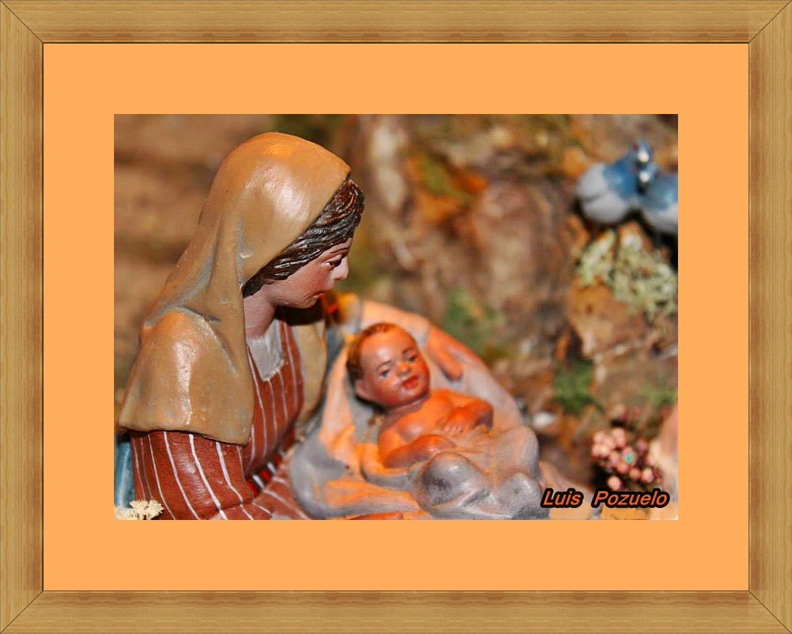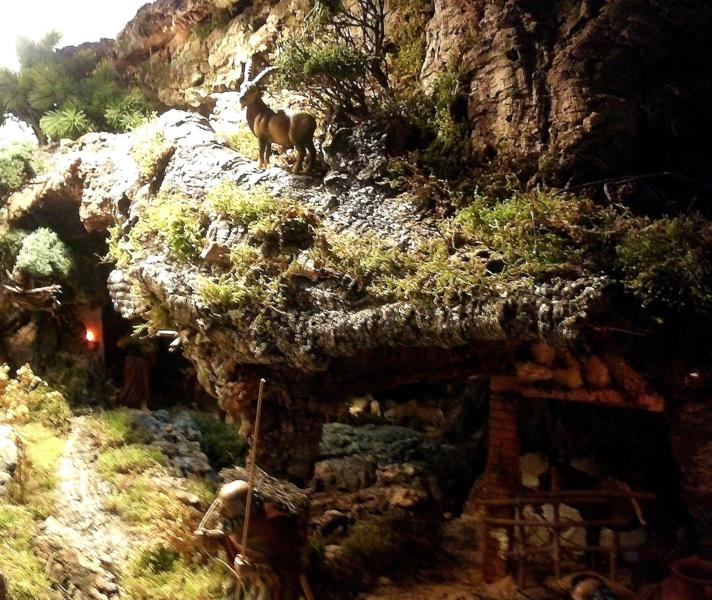 En segundo lugar, las nuevas adquisiciones de este año ( reyes adorando de Landi en 20 cm, pastor Almansa 21 cm y unas cabras de nuestro compañero Pablo, de "Animales de barro") también han contribuido, sobre todo por los reyes, para realizar un montaje distinto de los que hago habitualmente y así, por primera vez en mi vida, la Sagrada Familia ha salido de la gruta y no porque no la hubiera hecho, que ahí está con la mula y el buey y otros animales y por supuesto, con la vida y el calor que le proporcionan los pastores, sino porque la escena principal, que es la Adoración de los Reyes Magos, quedaba un tanto deplazada y claro, al considerar que este año el belén sólo presenta dicha escena, entendí que era mejor que estuvieran en un lugar más visible y más teniendo en cuenta que esa escena, San Mateo, que es el único que la describe -"...y al entrar en la casa, vieron al Niño con su madre María, y postrándose lo adoraron..."-, la ubica fuera de un establo o gruta, es por lo que me parece más lógico que estuvieran en la casa o, en este caso, en la puerta de la casa para recibirlos. Así que no hay ni Anunciación a los pastores ni por supuesto cabalgata. Me atrevería a decir que si un diorama es la representación de una escena, este año mi belén sería un diorama semiabierto.