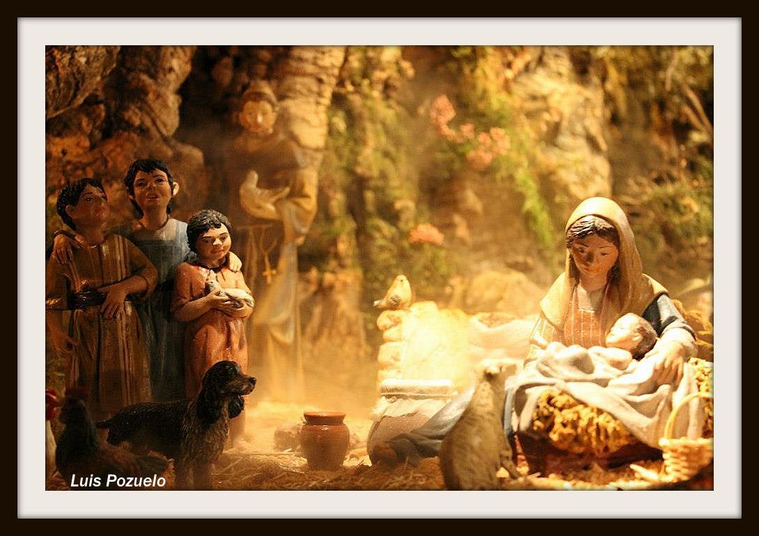A algunos os ha chocado no encontrar al santo en la primera fotografía...y es que el de Asís lleva unos tres años en un estante del salón de casa tranquilamente. Pero ha ocurrido que este año la gente que venía a casa, al ver a la mula y al buey, comentaban : " Ya sabrás que la mula y el buey no existieron en el nacimiento de Jesús, lo ha dicho el Papa..." y así una y otra vez, hasta que el bueno de Francisco, como sacando pecho, se situó en un rinconcito de la gruta y cada vez que escucha esa afirmación (?) comenta: "Vale, pero yo, que soy el inventor del belén, los puse y me gusta que se sigan poniendo...", sin más explicaciones, no merece la pena y es por esto por lo que, probablemente, la primera foto estuviera sacada antes de que llegara alguno de esos que pregunta estas cosas.