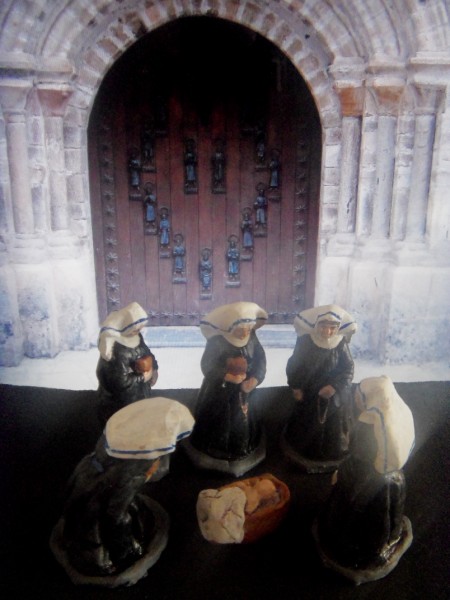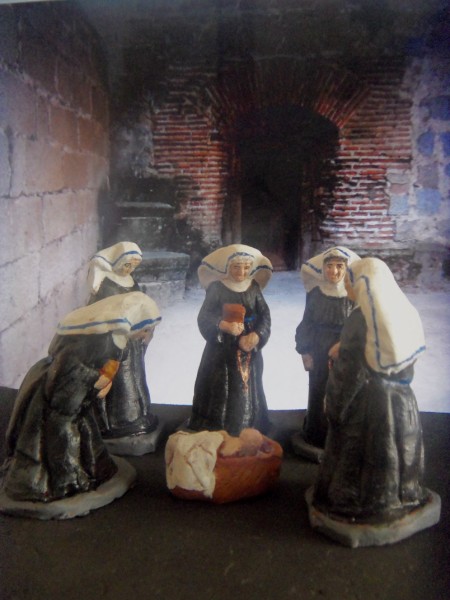 Hola, unas monjitas que muestran sorpresa por un bebe encontrado a las puertas de su " casa"..todos sabemos que se dedican a recoger,tutelar,cuidar estos niños abandonados desde hace muchisimo tiempo...aqui reflejo una de esas escenas con figuras de 5 cm,barro, palillo y policromadas.un saludo