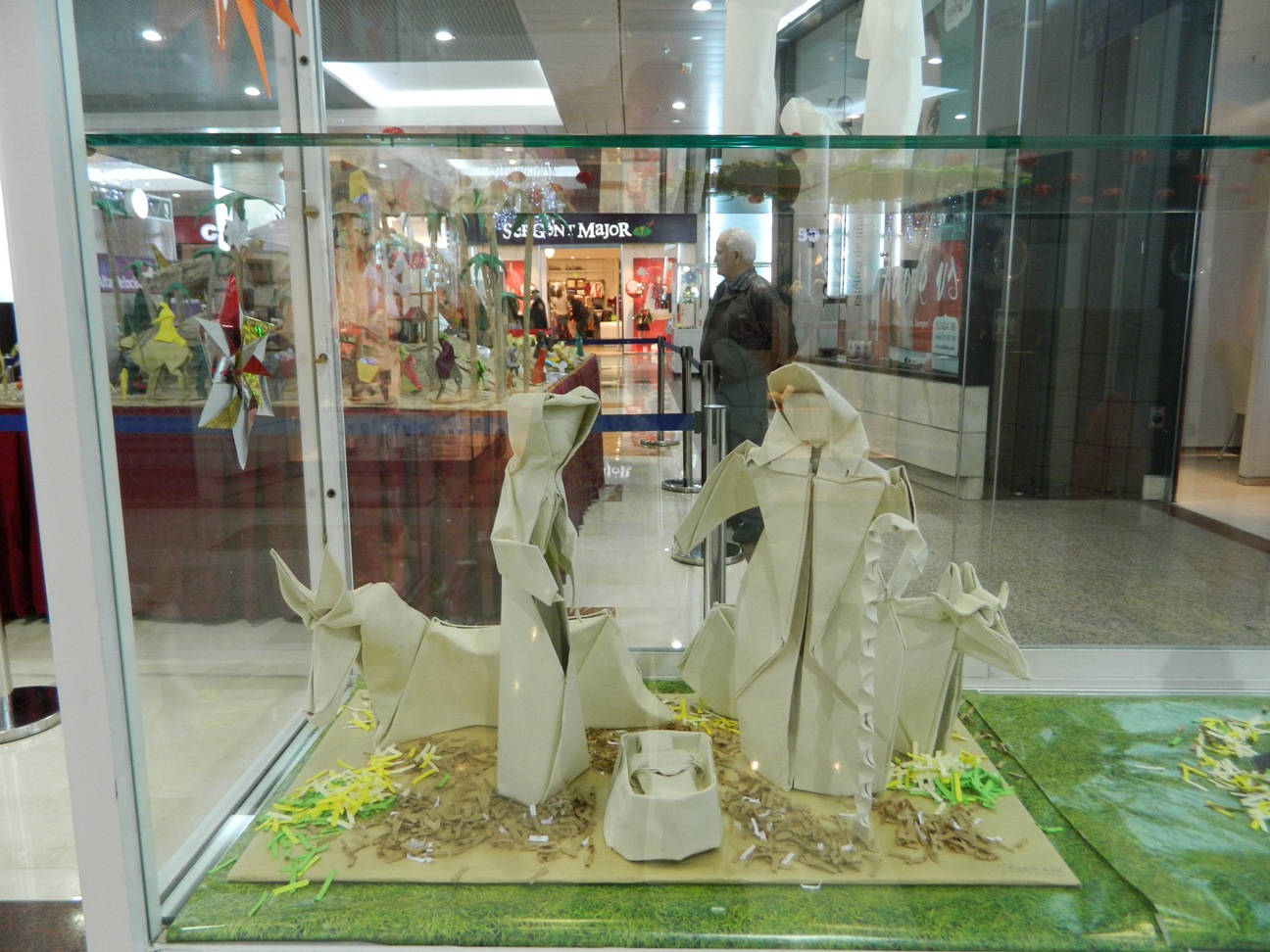 Aye visité el belén de papiroflexia, que se encuentra montando en el centro comercial de Hortaleza. Muy original y muy completo, junto al belén se encuentran varias vitrinas mostrando más escenas hechas con papel. Oidos los comentarios de los niños que lo estaban viendo,