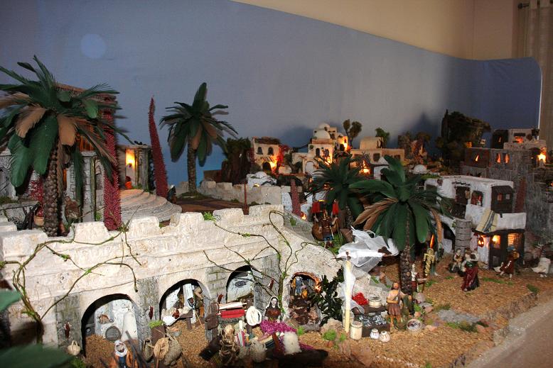 Otro compañero ya lo había visitado y me lo recomendó como ejemplo de Belén popular doméstico, muy trabajado. Así ha sido, he encontrado un Belén ya de unas buenas dimensiones en el que no faltaba de nada, desde puestos de frutas, pescado, cestería, panadería, etc., hasta cascada y río de agua natural, puerta y muralla importante, palacio de Herodes grandioso, su reloj de sol en el suelo, etc., etc., etc. Un sin fin de detalles. He de hacer mención especial a que, excepción hecha de las figuras (provenientes en su mayoría, de tiendas económicas) todo, todo, estaba hecho por ella misma, Mahuca.