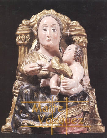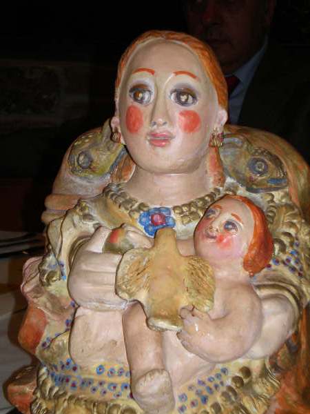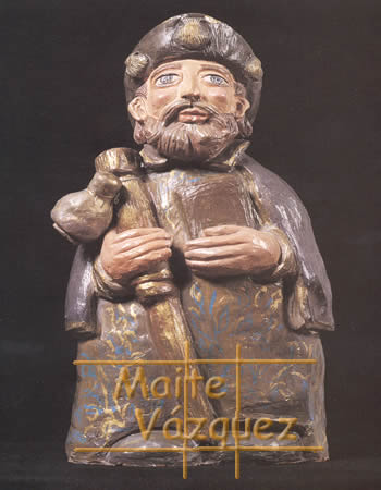 La gallega Maite Vázquez realiza unas figuras muy personales de barro policromado inspiradas en el rómanico pero con un cierto aire barroco.