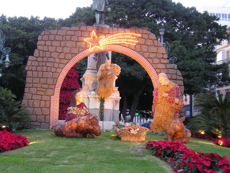 Como cada año en la Plaza de la Marina de Málaga se expone un enorme nacimiento hecho de flores. Se podrá ver hasta el 6 de enero y a cualquier hora.