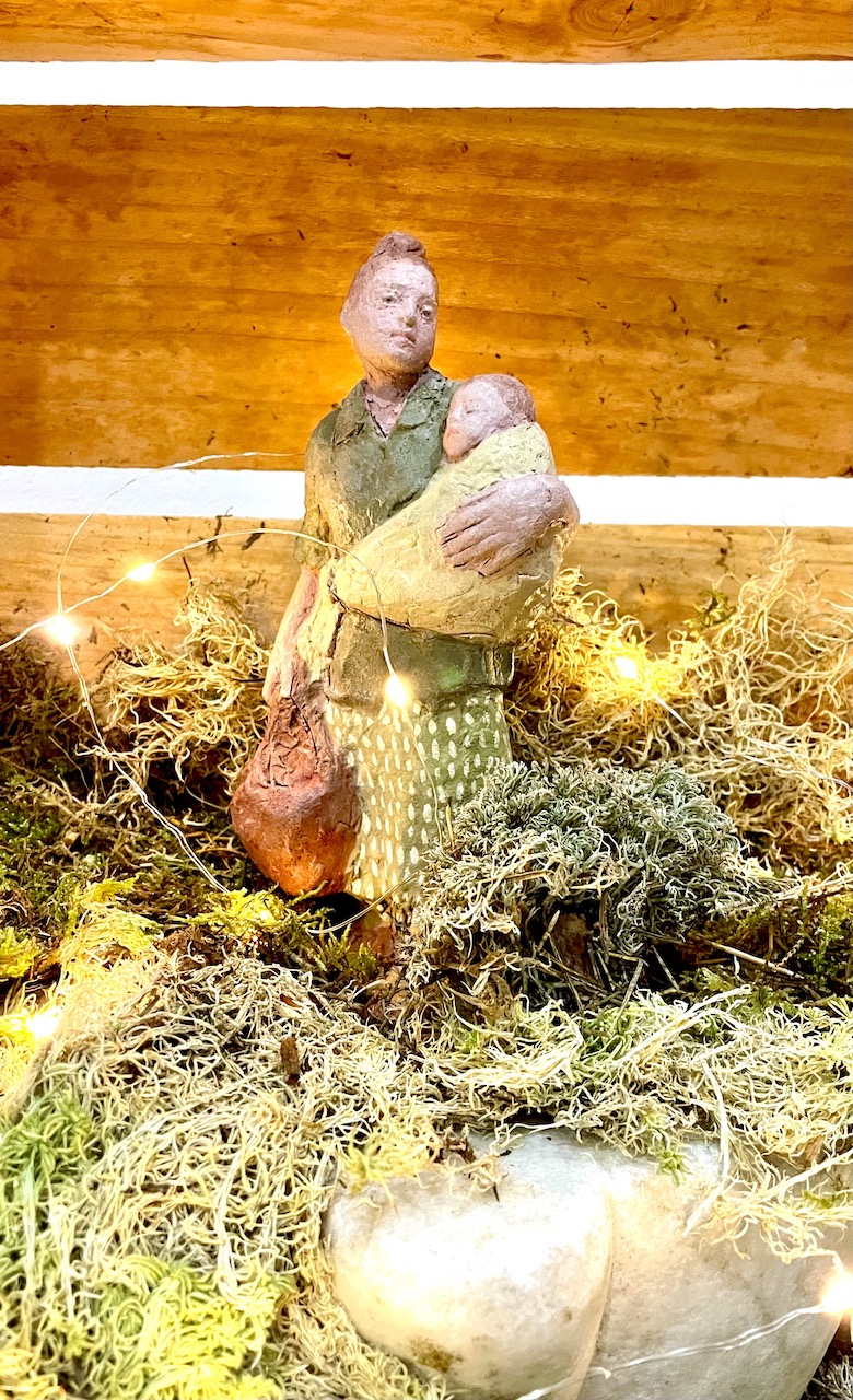 ...y todo, en el baúl de la entrada, con la sencillez de lo cotidiano, que unido al encanto de las figuras de Ester y Laura hacen posible el milagro de la Navidad en la escuela... en la del Colegio... en la de la vida...