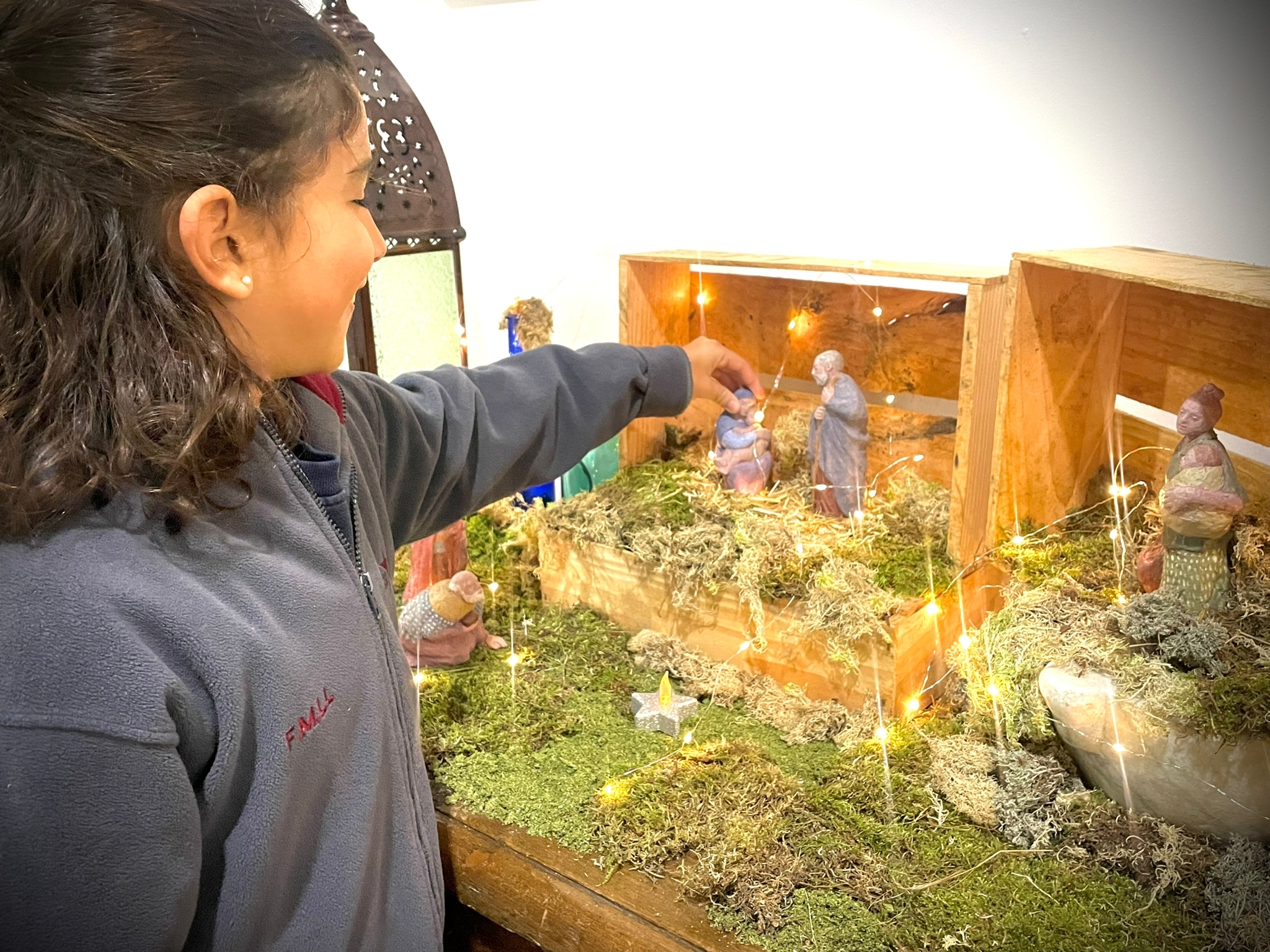 ...y todo, en el baúl de la entrada, con la sencillez de lo cotidiano, que unido al encanto de las figuras de Ester y Laura hacen posible el milagro de la Navidad en la escuela... en la del Colegio... en la de la vida...