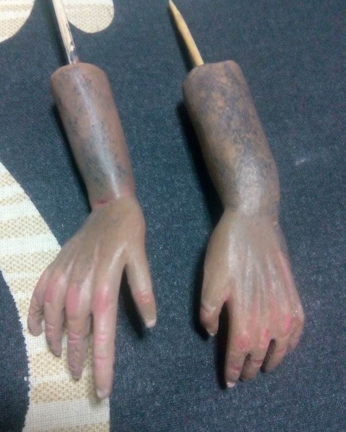 Las manos bastante bien, yo ahora las hago en madera, lo que permite durabilidad y sobre todo tallar una madera blanda es rápido y quedan muy naturales.