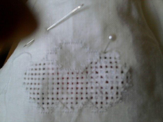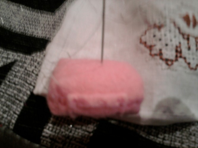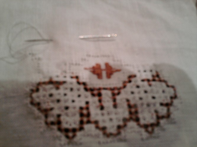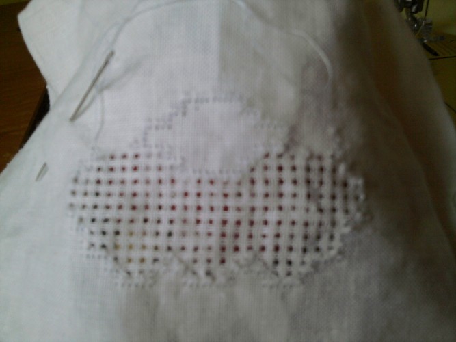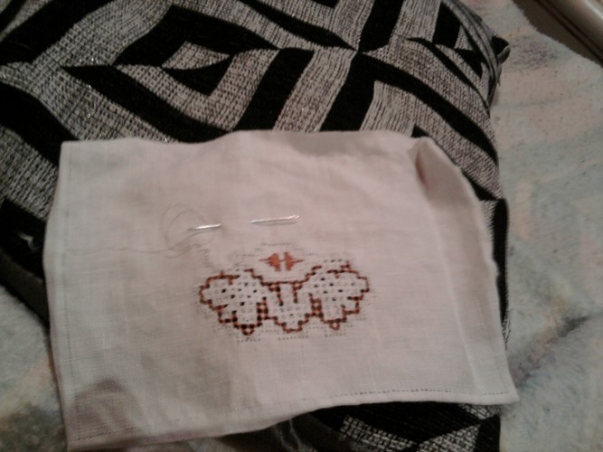 Intentaré enviar las fotos, es un mantel (sin terminar) para que parezca que están cosiendo.