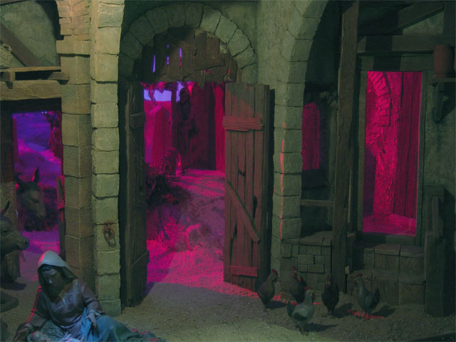 Las figuras empleadas son del artesano belenista José Luis Mayo, con unas escalas de 35, 30, 24 y 19 centímetros, todas llenas de movimiento y con un gran realismo en sus expresiones.