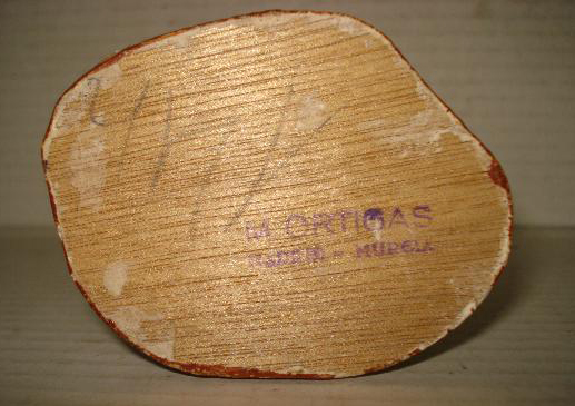 Cuando se pone una fina tapa de madera se sella con tampón de tinta, otras veces el sello es impreso y se marca "Ortigas", "Made in Spain" "Made in Murcia" "M Ortigas Madrid-Murcia" "Fabricado en España" "Artesania Ortigas".