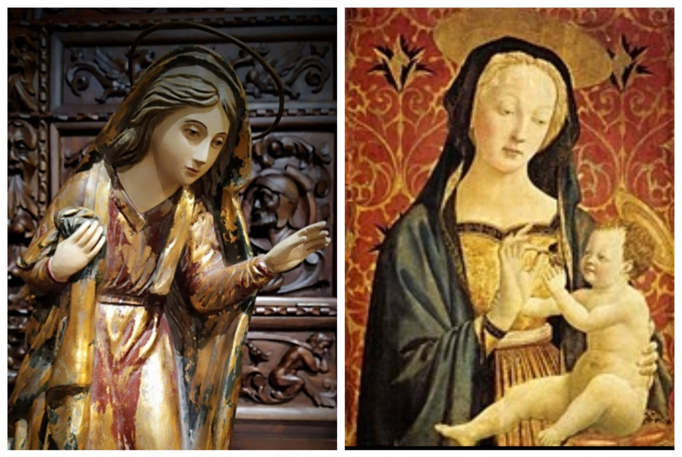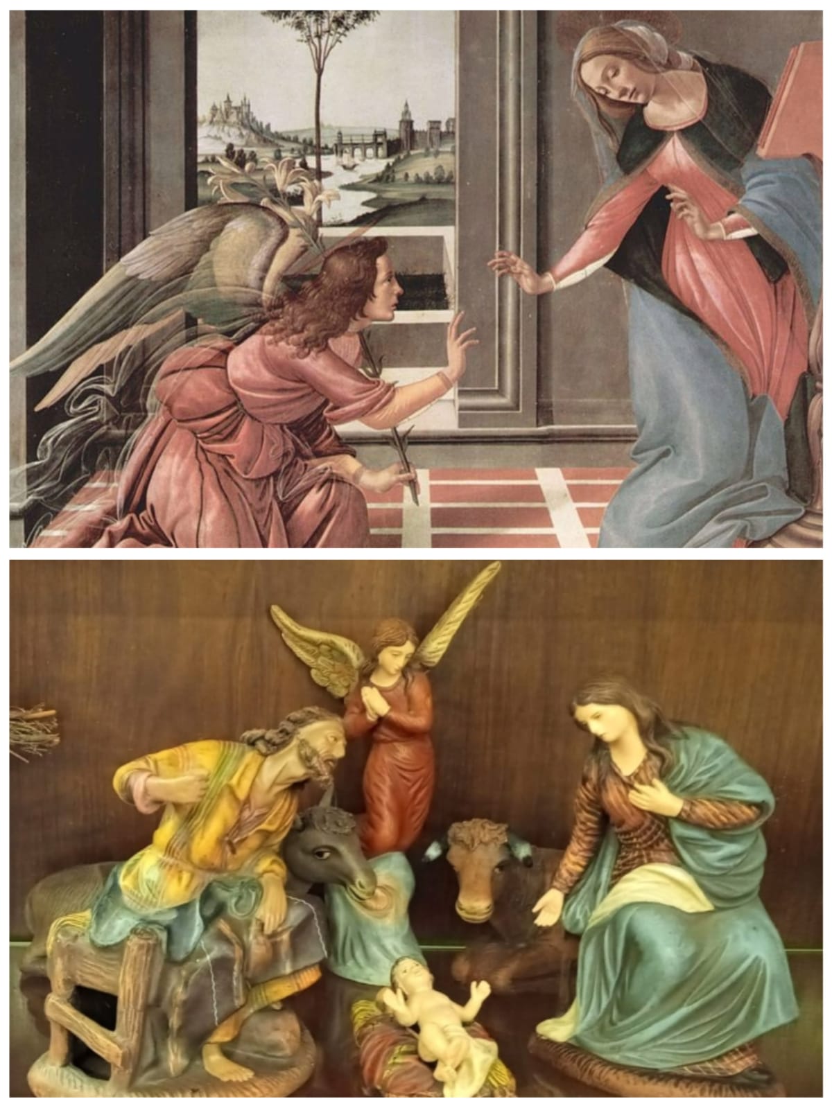 Teniendo en cuenta que Ortigas era un Taller/Fábrica de figuras de Belén con grandes ventas y que además pasaron muchos artesanos/escultores, tenía y tiene un `estilo´muy definido que no creo que sea el `style sulpicien´. Todo indica que habian unas directrices de cómo se querían esas figuras y, estudiando aspectos que resultan diferenciadores de otras figuras del mercado como las posiciones corporales(que como dice Emilí llegan a ser extremas o forzadas), rostros y manos(no definidas en un sentido anatómicamente proporcionado), me llevó a los albores del Renacimiento, en concreto al principio al Quatrocento, de tal manera que, si vemos el hilo de Ortigas, comprobamos que empezó sin un estilo definido con pseudohebreas y el famoso estilo granadino. En algún momento posterior en los años 50 se tomó una clara dirección del estilo de sus figuras, no sabemos si con la idea de diferenciarse de la competencia o por un gusto determinado. ¿Pudo iniciarse con un encargo o un concurso tal vez?. Por ejemplo, esta comparativa del cuadro de Bernardo Luini nos puede dar una idea,