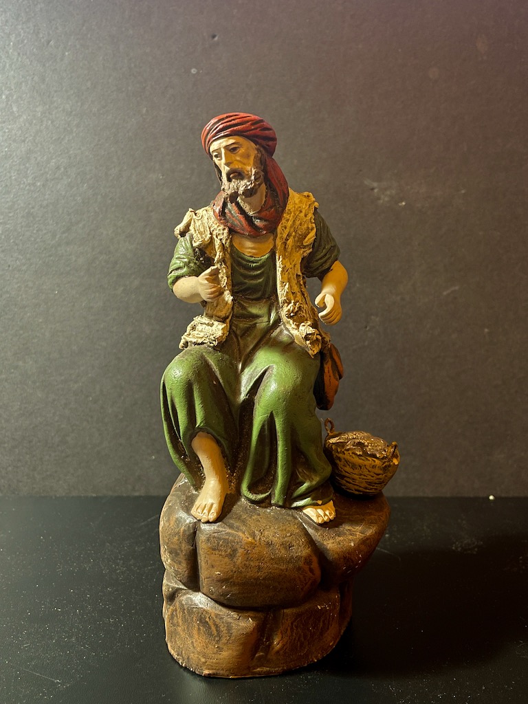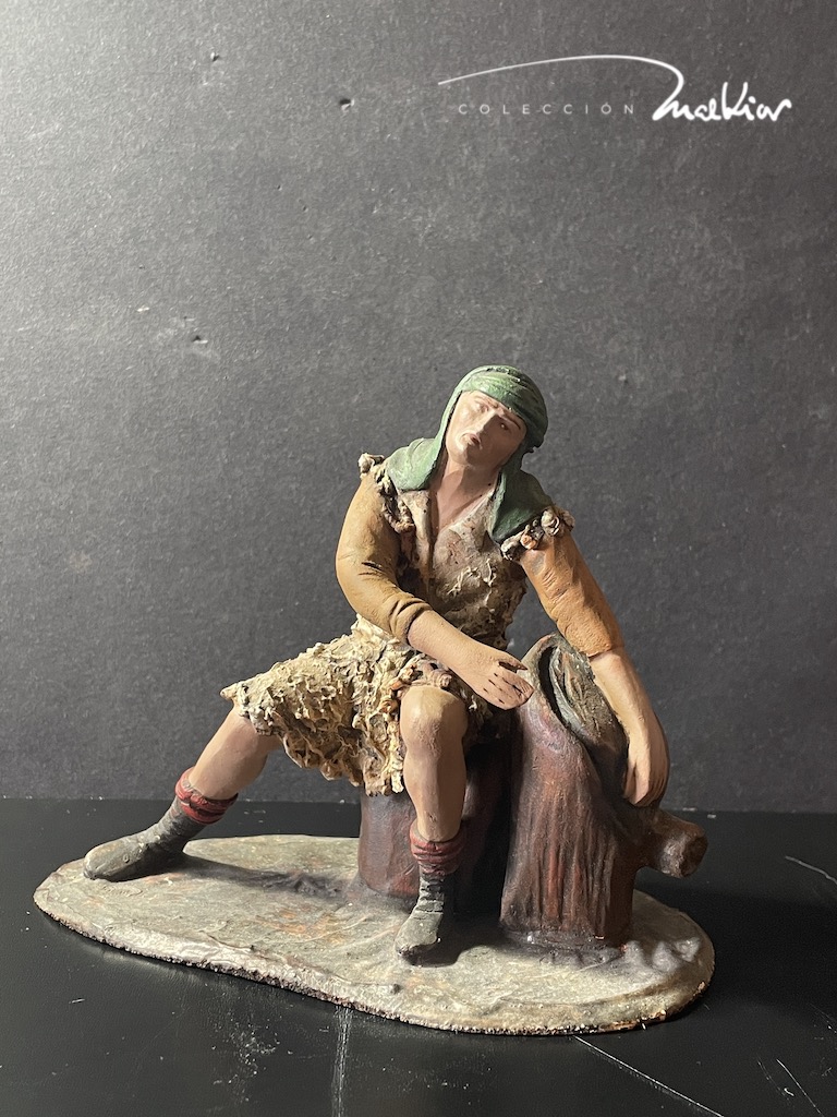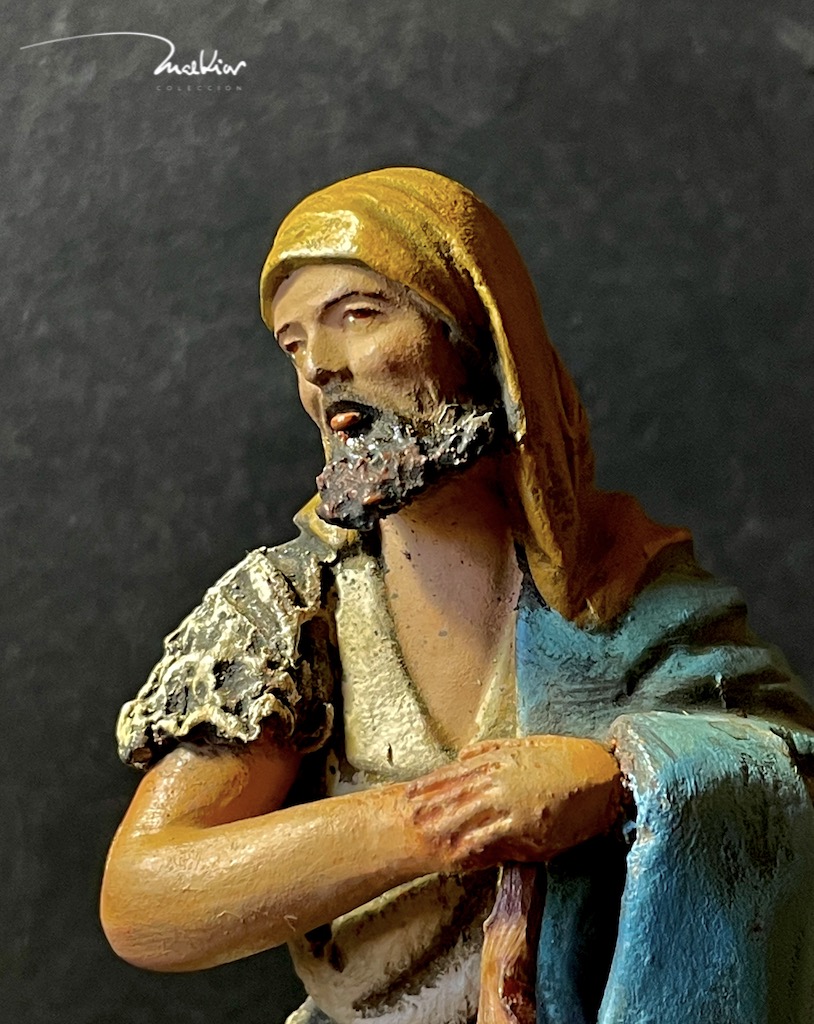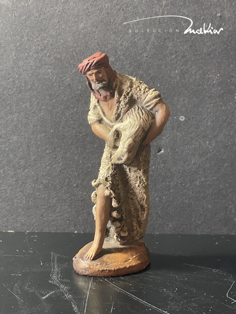 De la serie 704.14 llega a la Colección Malkior un pescador, sedente, sobre una peana rocosa. Viste con los atuendos típicos de las series de Ortigas, con pelliza hecha de barbotina. Lleva turbante, zurrón y cesta de pescado. Un pescador de Galilea, podría ser... el lenguaje del mundo de la pesca, los símiles... son algo que están muy presentes en el Evangelio y que por tanto no podían faltar pescadores en nuestra Colección... no deja de ser una llamada a nosotros mismos, como decía el Evangelio de hace unos días: "yo os haré pescadores de hombres"
