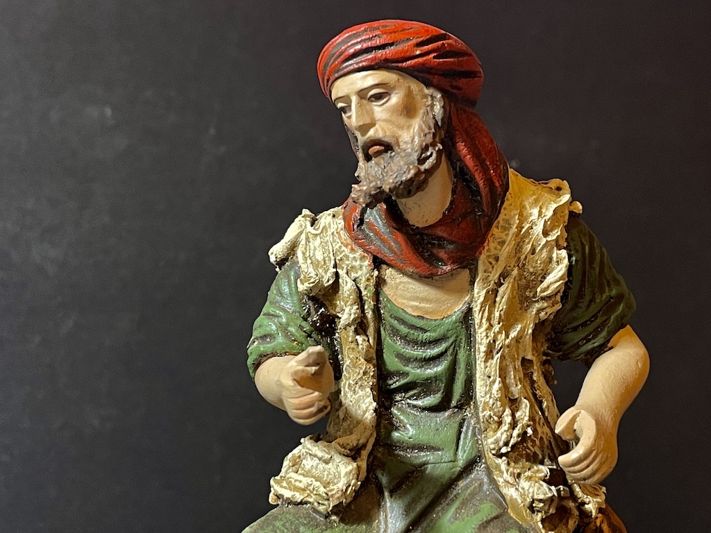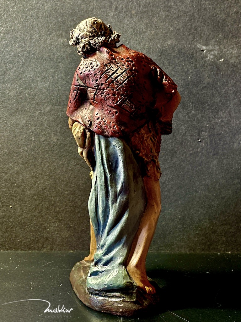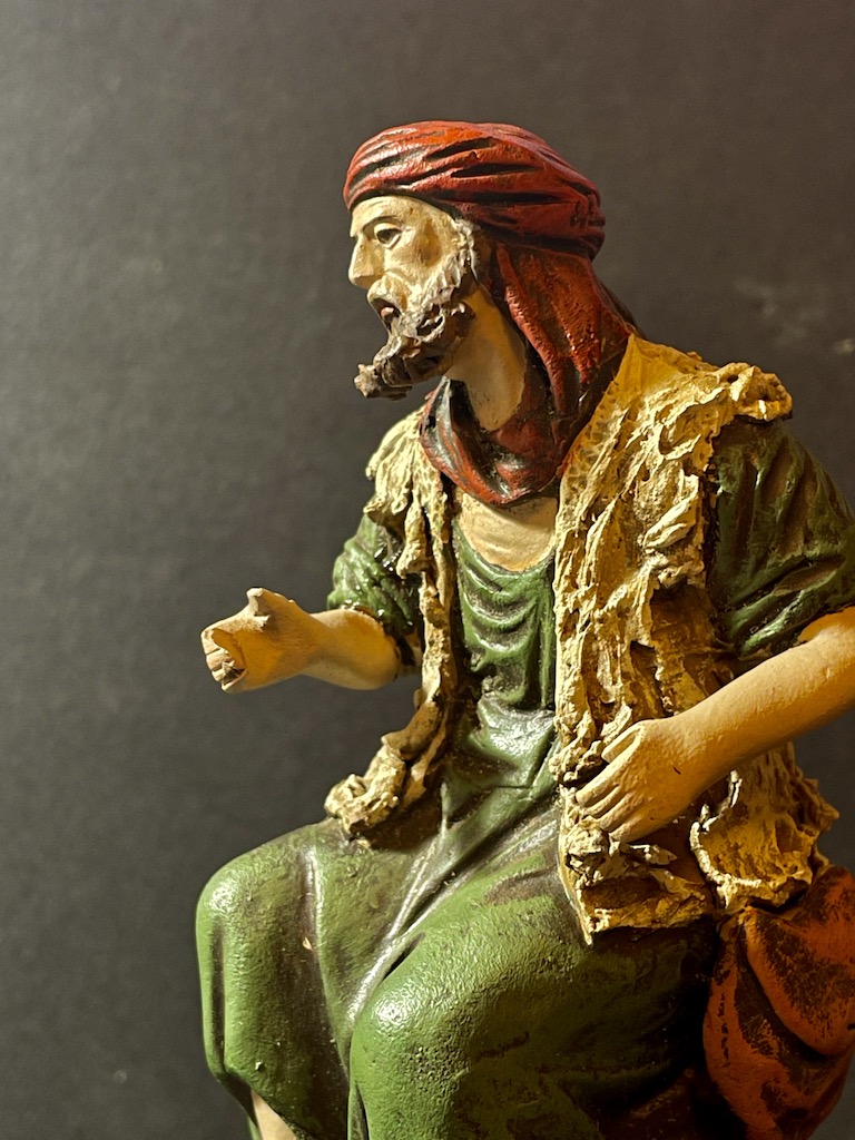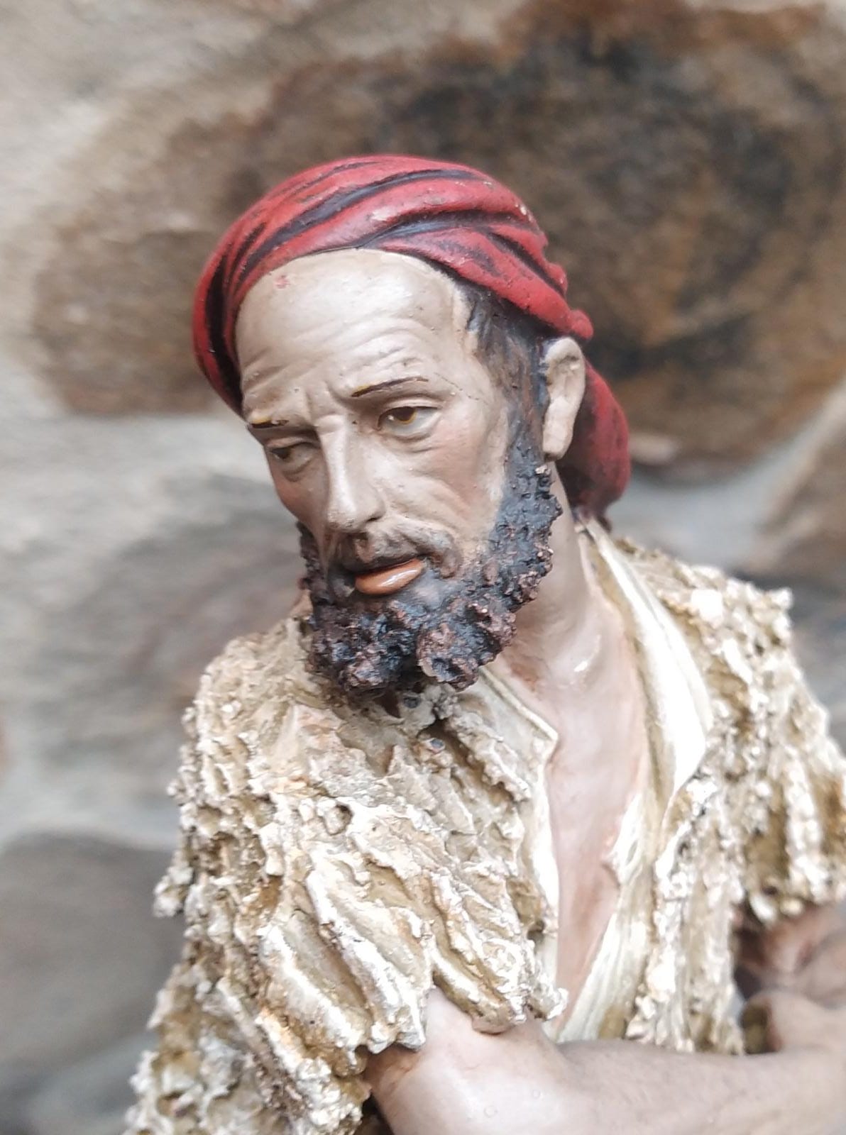 De la serie 704.14 llega a la Colección Malkior un pescador, sedente, sobre una peana rocosa. Viste con los atuendos típicos de las series de Ortigas, con pelliza hecha de barbotina. Lleva turbante, zurrón y cesta de pescado. Un pescador de Galilea, podría ser... el lenguaje del mundo de la pesca, los símiles... son algo que están muy presentes en el Evangelio y que por tanto no podían faltar pescadores en nuestra Colección... no deja de ser una llamada a nosotros mismos, como decía el Evangelio de hace unos días: "yo os haré pescadores de hombres"