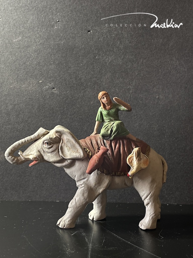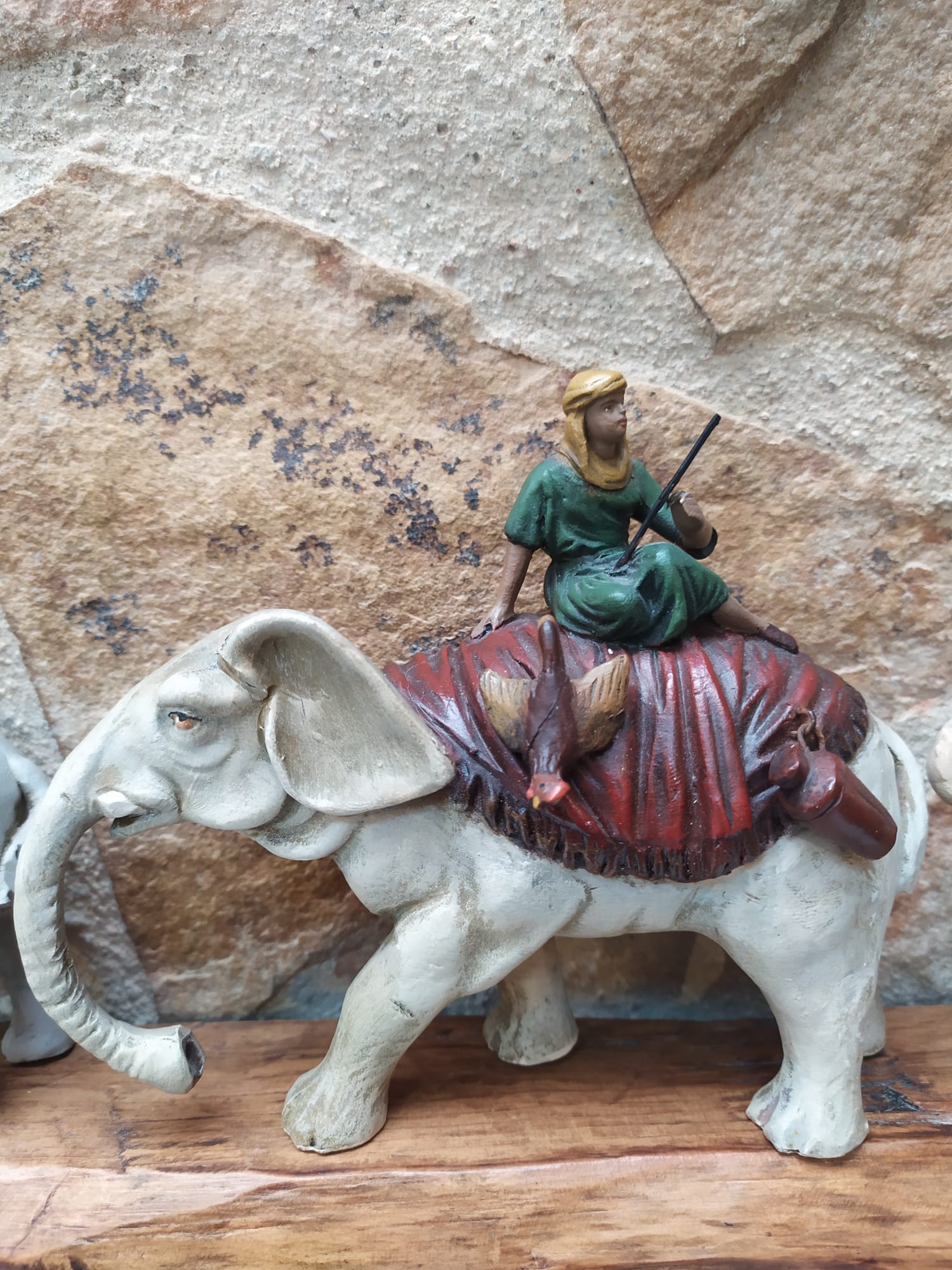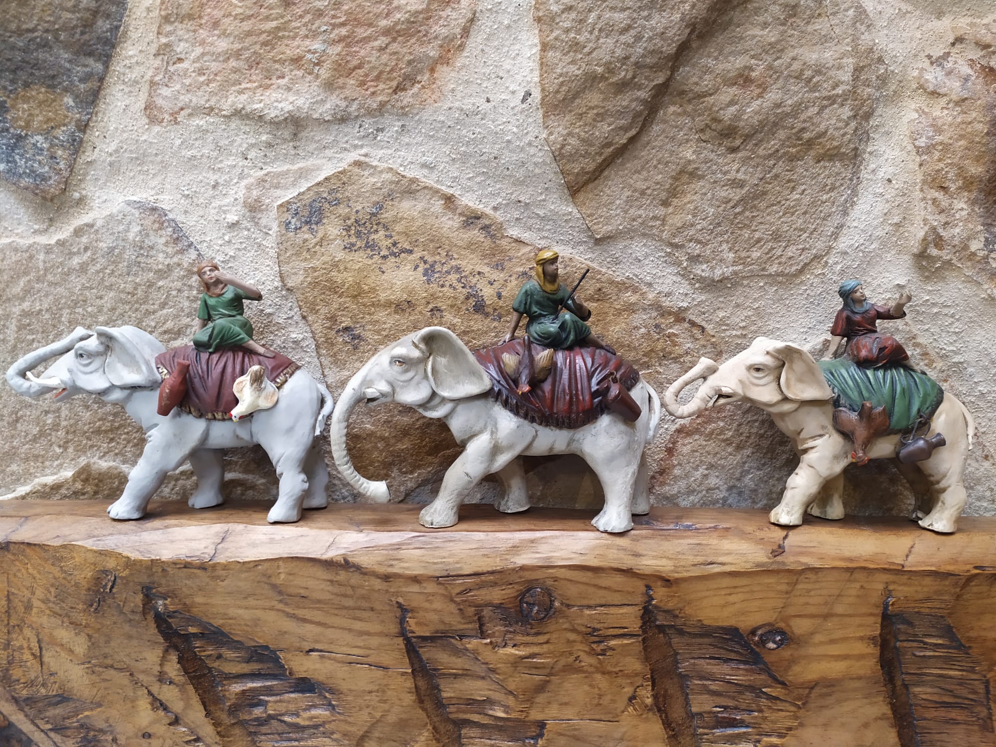Ampliamos el catálogo de figuras de Ortigas con estas tres figuras de personajes (que pueden ser pastores, o quizás formar parte del cortejo de una cabalagata o simplemente mercaderes hacia Belén...) montados en elefantes... podríamos catalogarlo como 'rarezas' en la producción por lo poco que se han podido ver... hoy hemos conseguido fotografiarlos juntos antes de su partida a tres colecciones diferentes.
