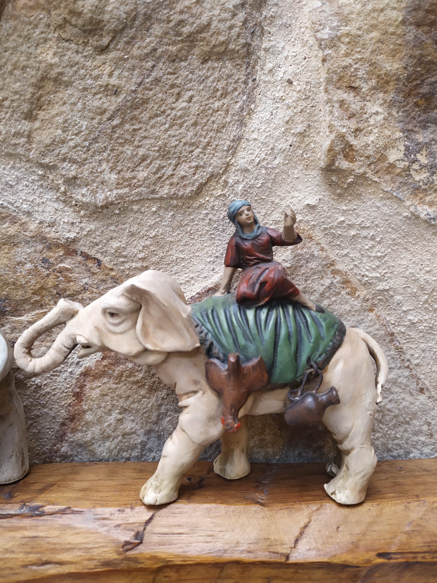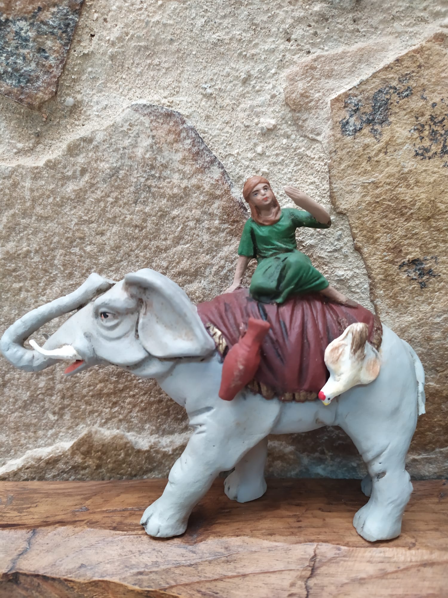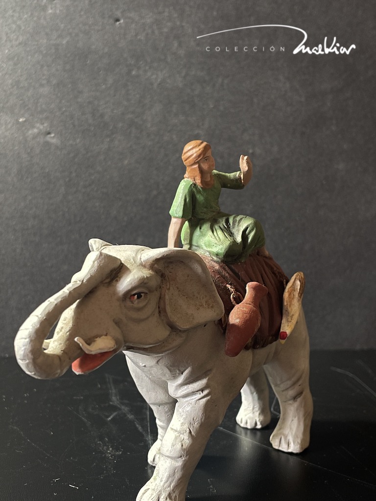 Ampliamos el catálogo de figuras de Ortigas con estas tres figuras de personajes (que pueden ser pastores, o quizás formar parte del cortejo de una cabalagata o simplemente mercaderes hacia Belén...) montados en elefantes... podríamos catalogarlo como 'rarezas' en la producción por lo poco que se han podido ver... hoy hemos conseguido fotografiarlos juntos antes de su partida a tres colecciones diferentes.