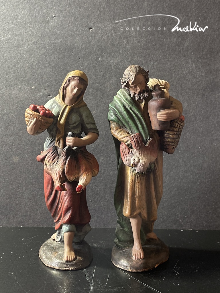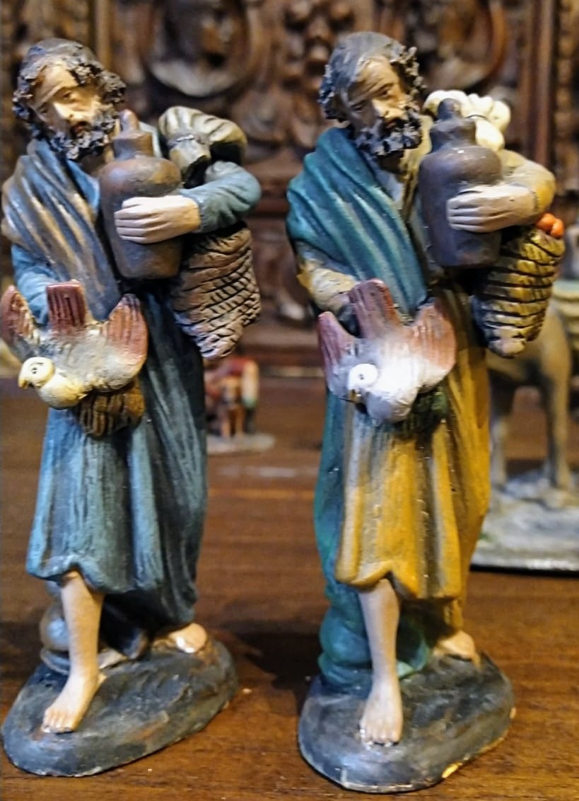 Dos pastores que formaban parte de una anunciación, seriados 701.14. Sellados en base de madera.