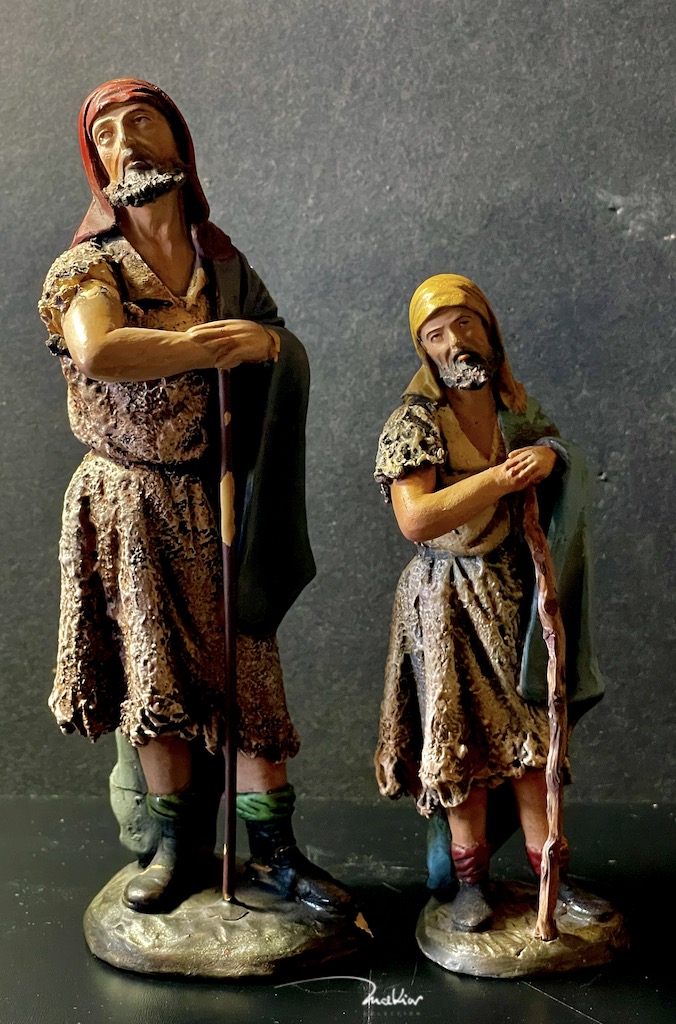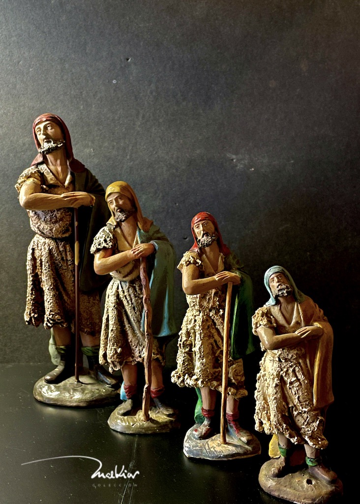 A continuación un grupo de pastores, también de la serie de 21 cm, que facilmente pueden aparecer en una escena de adoración o en una escena de la anunciación a los pastores. (Pastores laterales de la colección de Tunito y el central de la Colección Malkior)