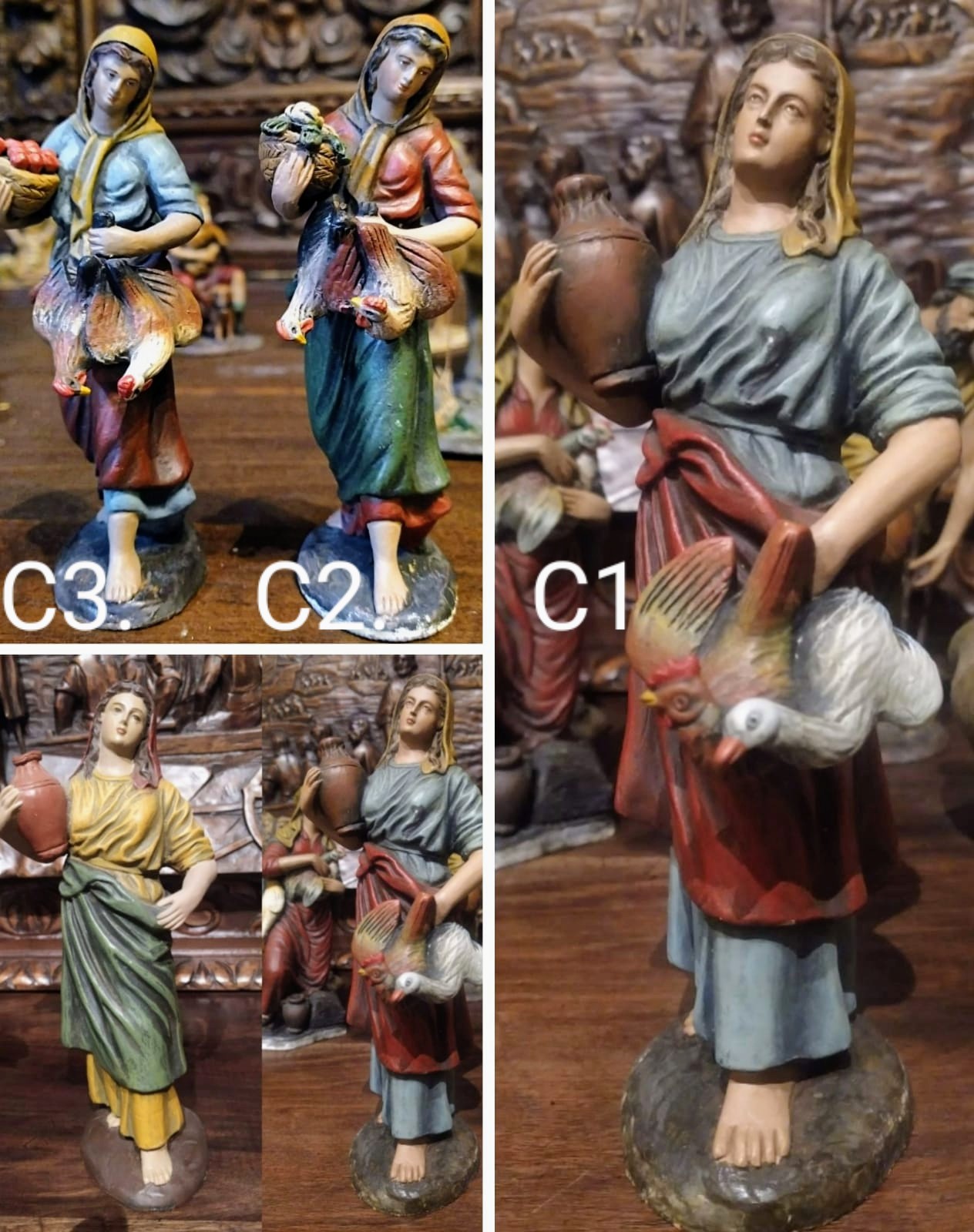 Dos versiones más que podriamos situar en medio de las dos que inicialmente aportaba Tunito. Con variaciones del molde en cuanto a la postura del cuello, y con acabados bastante cuidados en la policromia, sobretodo la segunda.