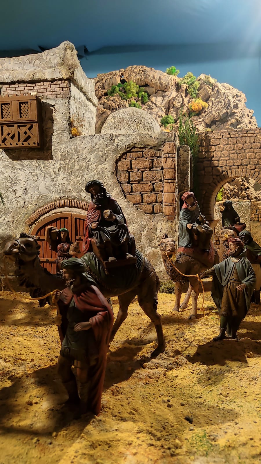 ... En estas figuras se puede vislumbrar como el tiempo y el espacio se han congelado. Se congelan expresiva y compositivamente ante el misterio que los acoge: todo un Dios se hace hombre, pequeño, niño, sencillo, envuelto en pañales... y los Magos están representados en ese instante de adoración, ese momento justo antes de llegar al portal,...