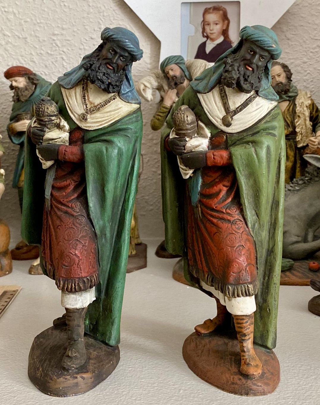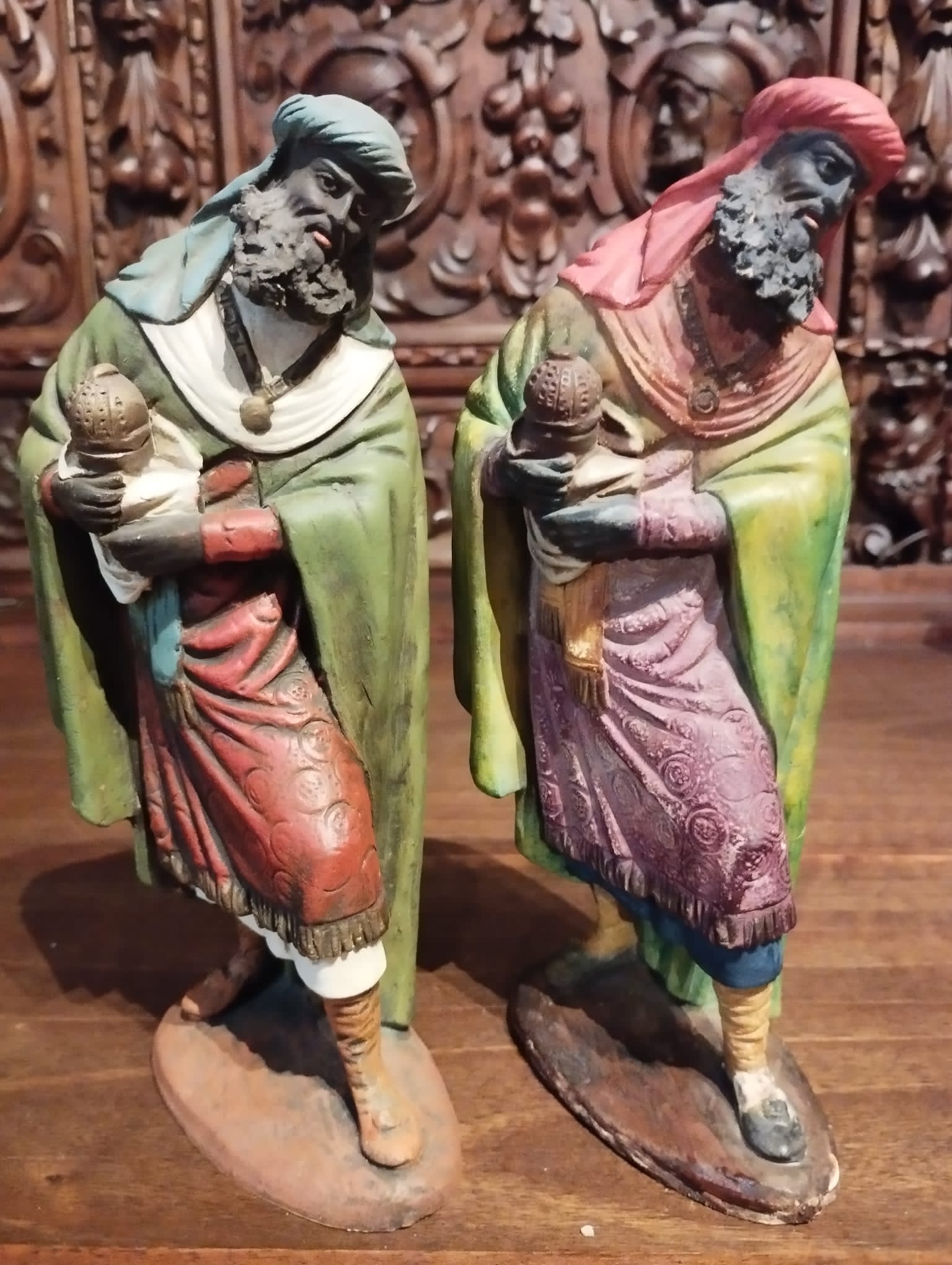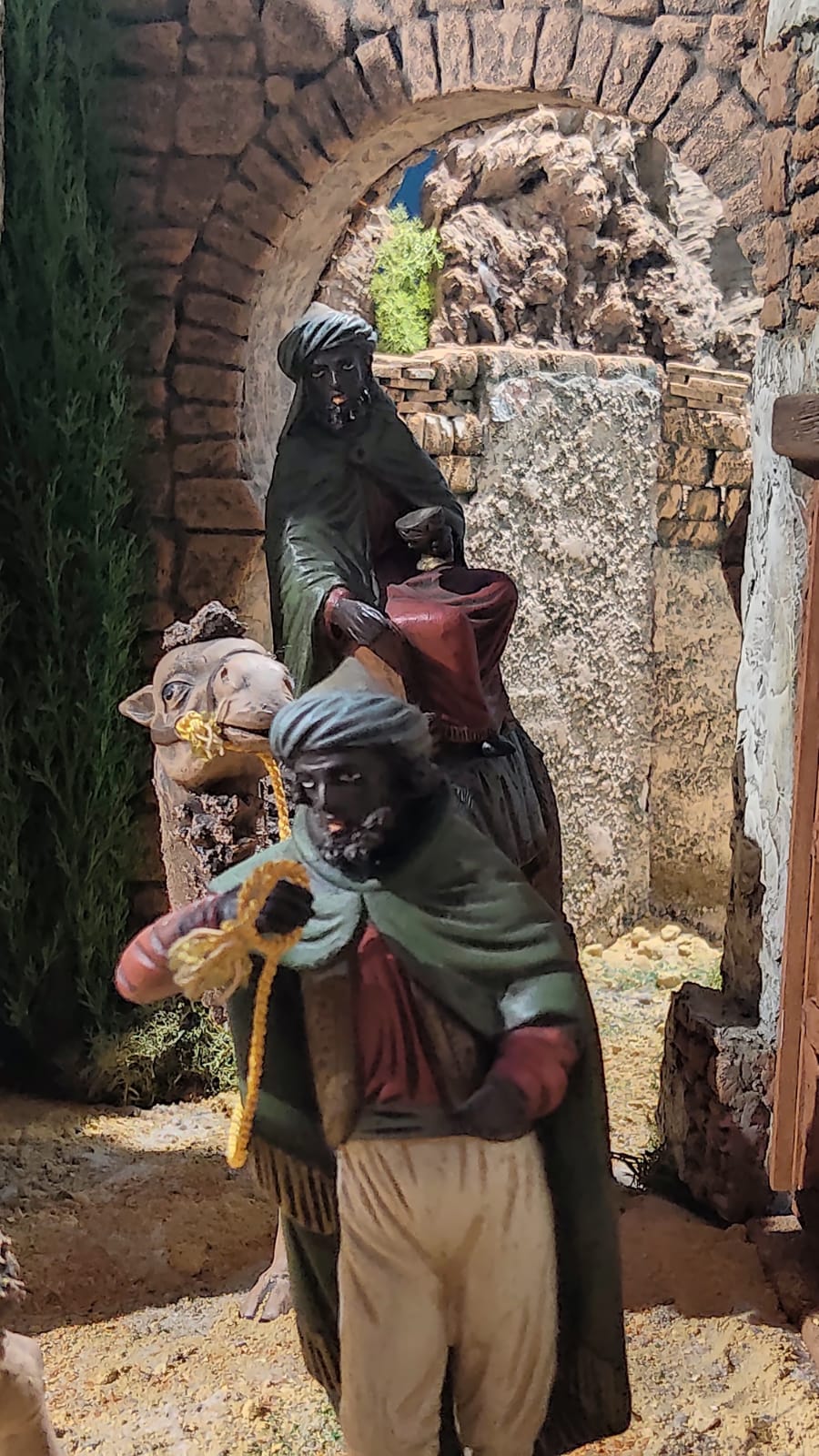... En estas figuras se puede vislumbrar como el tiempo y el espacio se han congelado. Se congelan expresiva y compositivamente ante el misterio que los acoge: todo un Dios se hace hombre, pequeño, niño, sencillo, envuelto en pañales... y los Magos están representados en ese instante de adoración, ese momento justo antes de llegar al portal,...