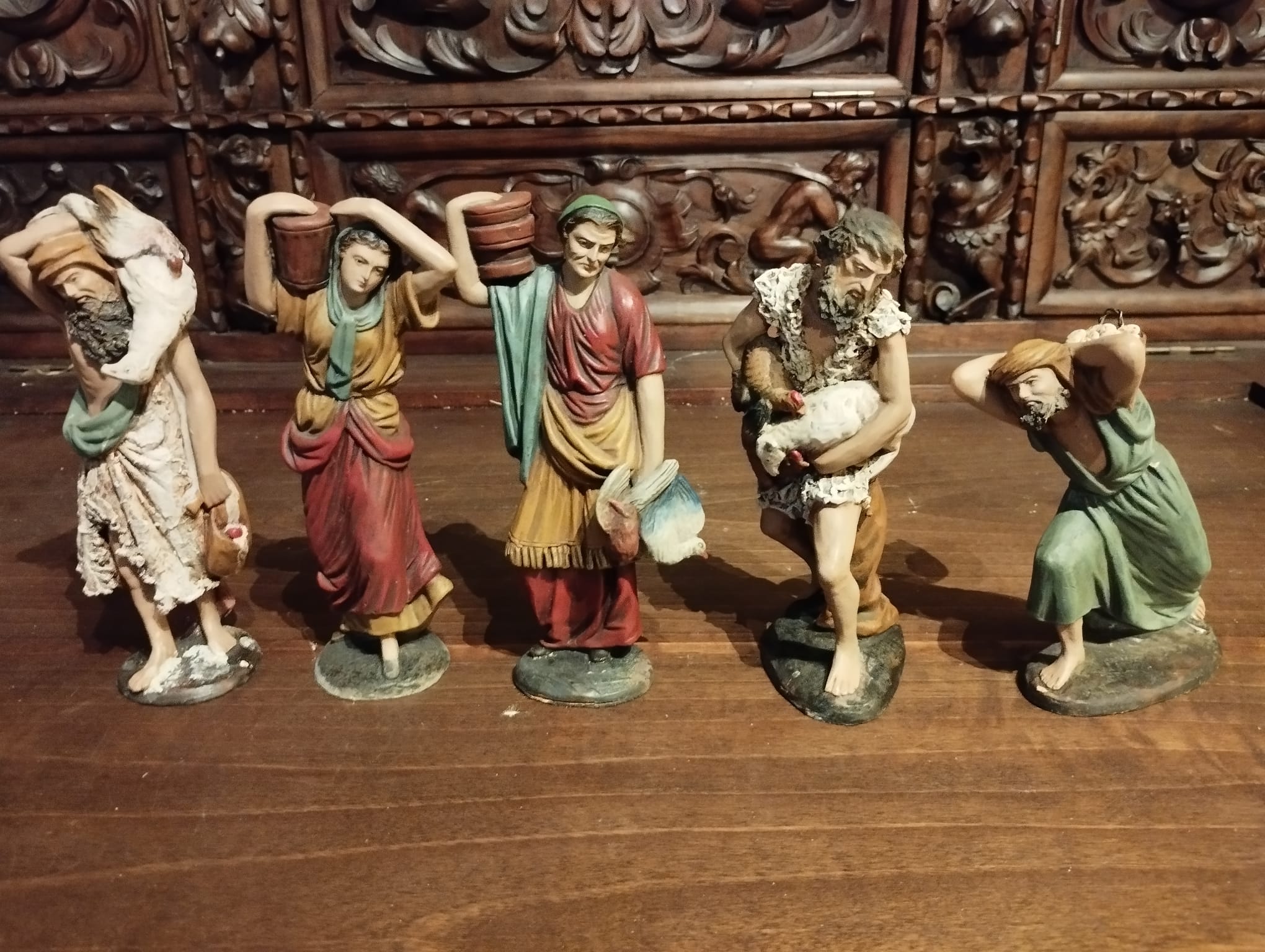 IMG_20241022_175750.jpg (3657KB - 63 descargas)Después de las grandiosas figuras de 30 que Gustavo nos aportaba en el foro, aprovecho que en estos días se han movido de colecciones algunas figuras de Ortigas. Aquí os dejo las cuatro [localizadas] de este pastor con ofrendas que se encamina hacia el misterio de Belén. No hace falta que aporte muchas especificaciones técnicas que ya hemos comentado... en este caso la variedad más significativa está en los acabados polícromos... simplemente un aporte más. (Gracias a los que han colaborado con las figuras)
