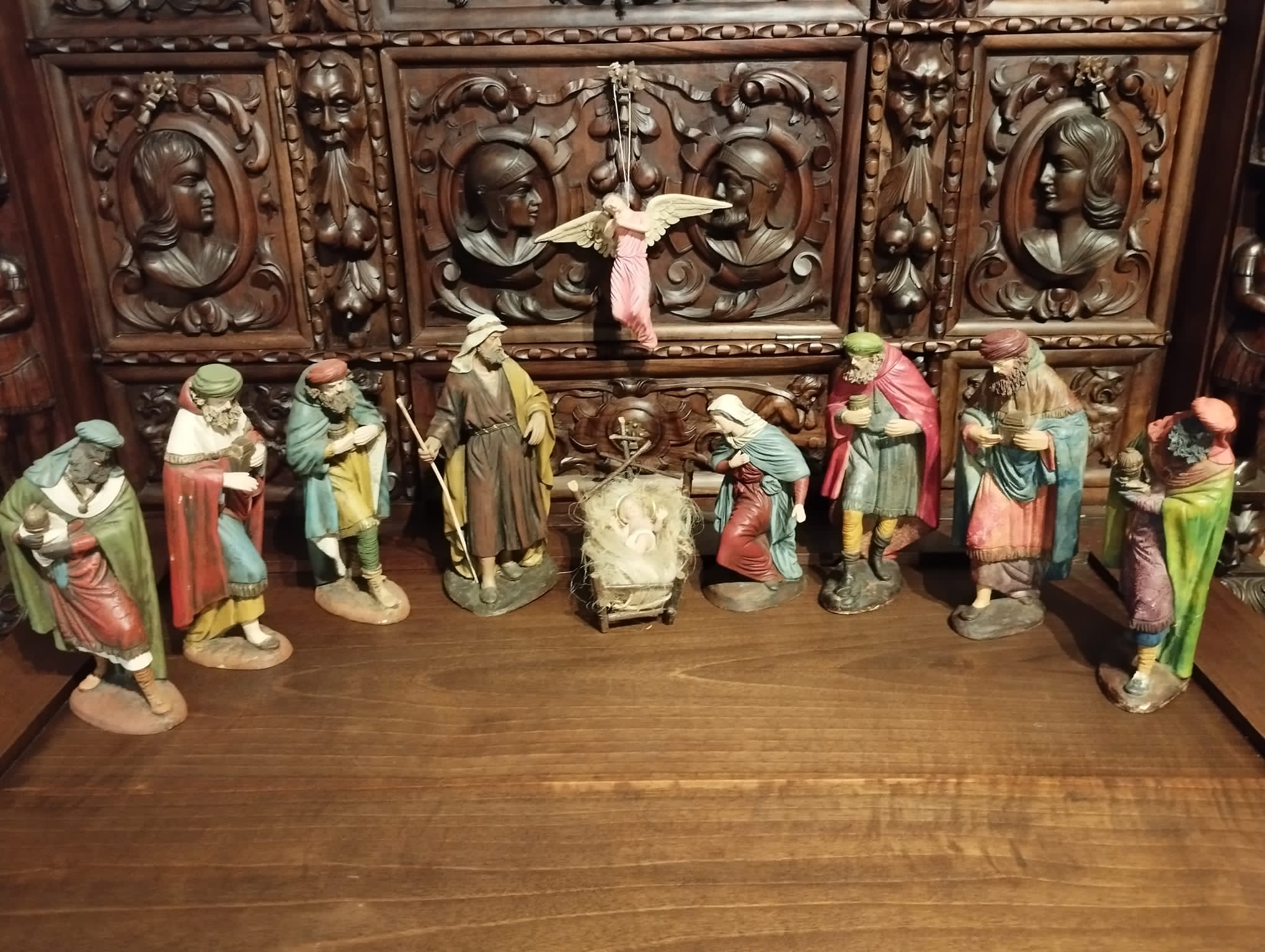 IMG-20241120-WA0049.jpg (258KB - 63 descargas)A veces pienso que muchas de las figuras que se pasean por la "alfombra roja" del bargueño de Tunito, son dignas de una exposición, de esas que ponen en valor al artesano que las modeló, al empresario-comerciante que les dio difusión por España y América, y al coleccionista que las atesora con mimo y cuidado... dignas de una exposición que pone de manifiesto la producción de una industria belenista que marcó un antes y un después en la producción de figuras de belén murcianas y que fue cabeza de serie en muchas de las producciones que llegan a nuestro mercado belenista hasta el día de hoy...