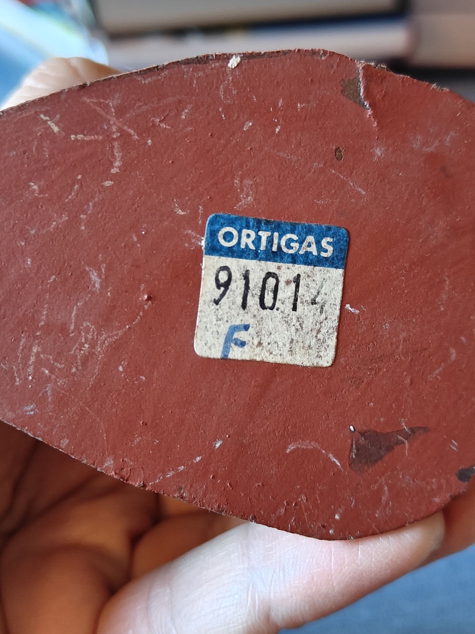 Para finlizar, un pastor adorador, con una canasta de frutas, policromado con un amarillo muy característico de los pirgemntos de la fábrica Ortigas. Sellado en base de madera 705.12 (aunque sobre el 2 aparece escrito a mano un 0, quién sabe si es de fábrica o de anteriores propietarios... pero sí que puedo estar de acuerdo en que es una figura que se asemeja en proporciones más a los de 10 que a los de 12).