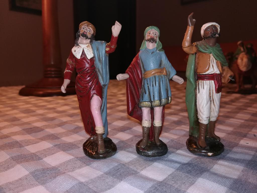 Aun así sigo buscando para tener el mismo Belén en mi nuevo domicilio –además de no encontrar el de las fotos (del pasado año)-. También sé que existía una variante de los Reyes Magos, iguales, pero montados en camello, en una sola pieza cada uno. Lo sé porque comentándolo con un compañero de Universidad, casualmente los tenía así, y me los enseñó. Hace unos años vi que habían vendido un Belén similar, creo que en la pág. Segunda Mano, por internet.