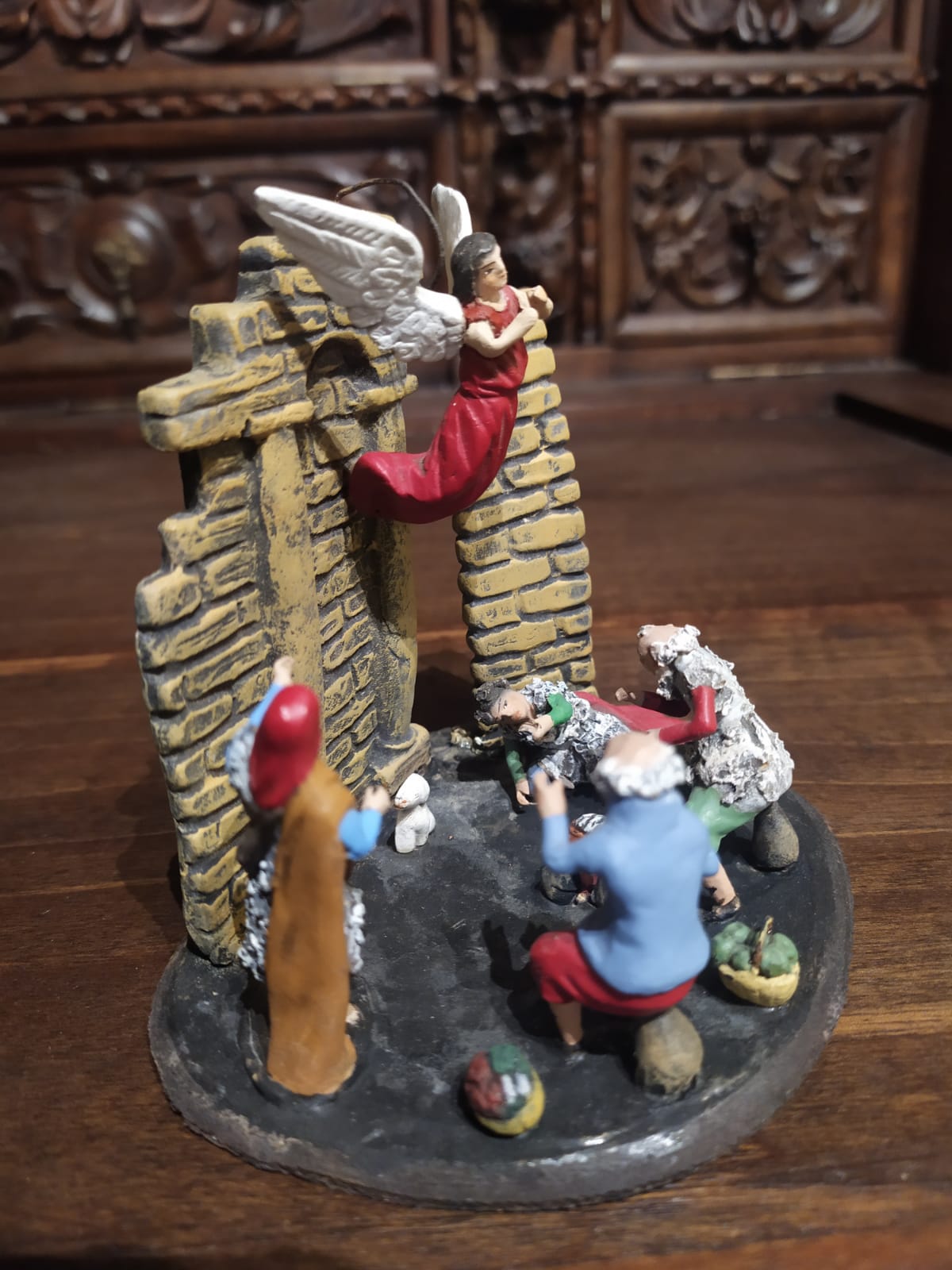 Despues de un proceso de limpieza, porque realmente lo peor de todo era la suciedad acumulada. Recuerdo que el pastor sentado con perro, entre el pie izquierdo y la túnica tenía trozos de periódicos mezclados con años de polvo y tierra acumulada... Pues eso, limpieza, y unos retoques superficiales, un brazo roto... y unas jornadas entretenidas en el primer verano de la pandemia.