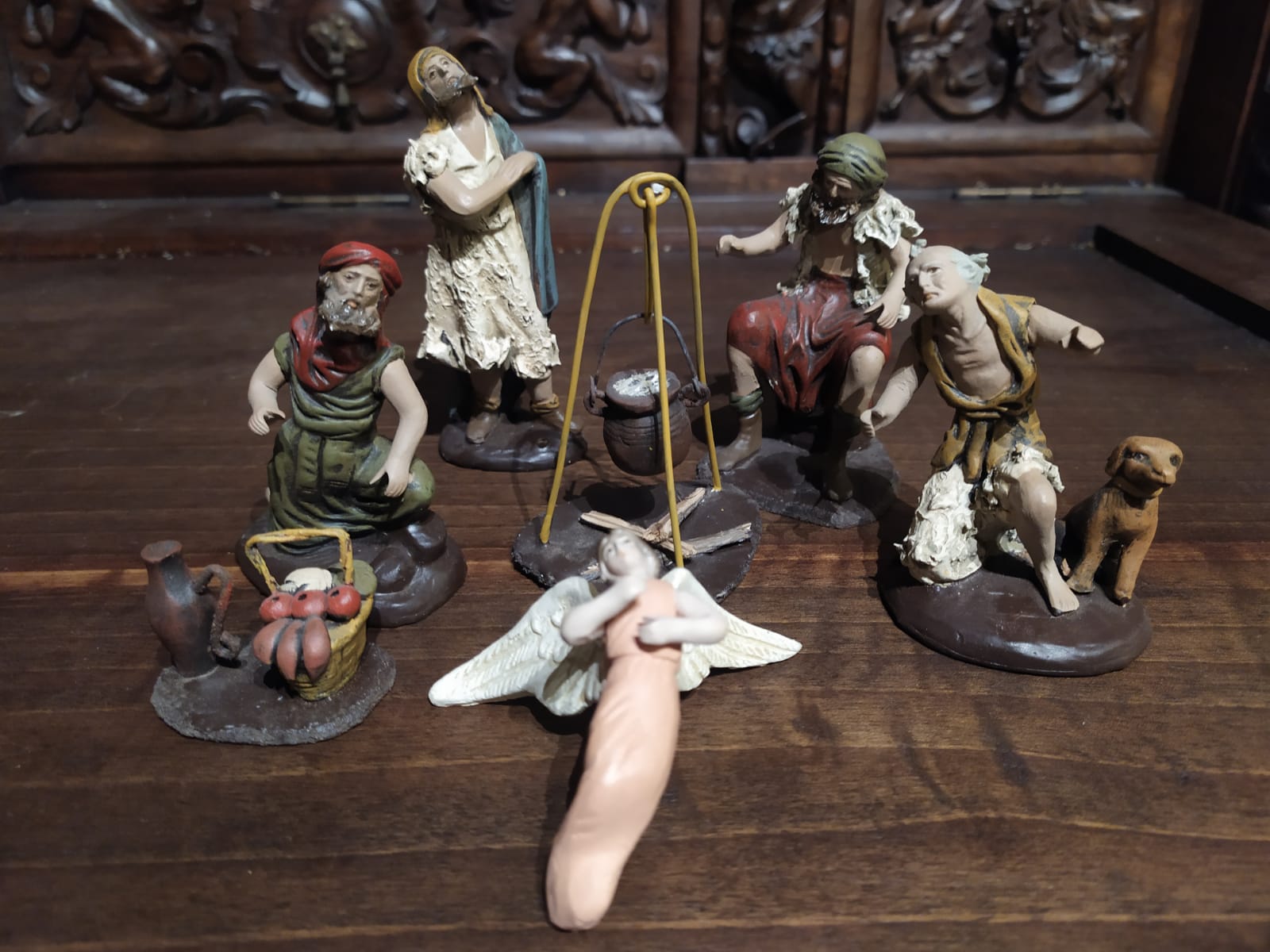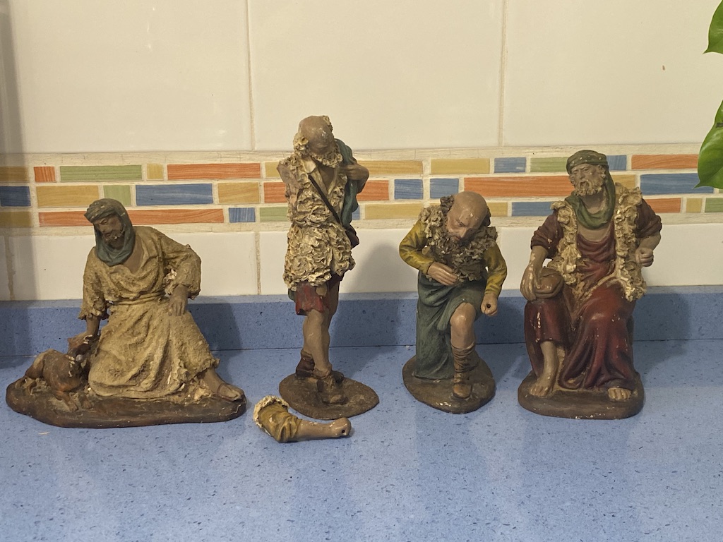 Despues de un proceso de limpieza, porque realmente lo peor de todo era la suciedad acumulada. Recuerdo que el pastor sentado con perro, entre el pie izquierdo y la túnica tenía trozos de periódicos mezclados con años de polvo y tierra acumulada... Pues eso, limpieza, y unos retoques superficiales, un brazo roto... y unas jornadas entretenidas en el primer verano de la pandemia.