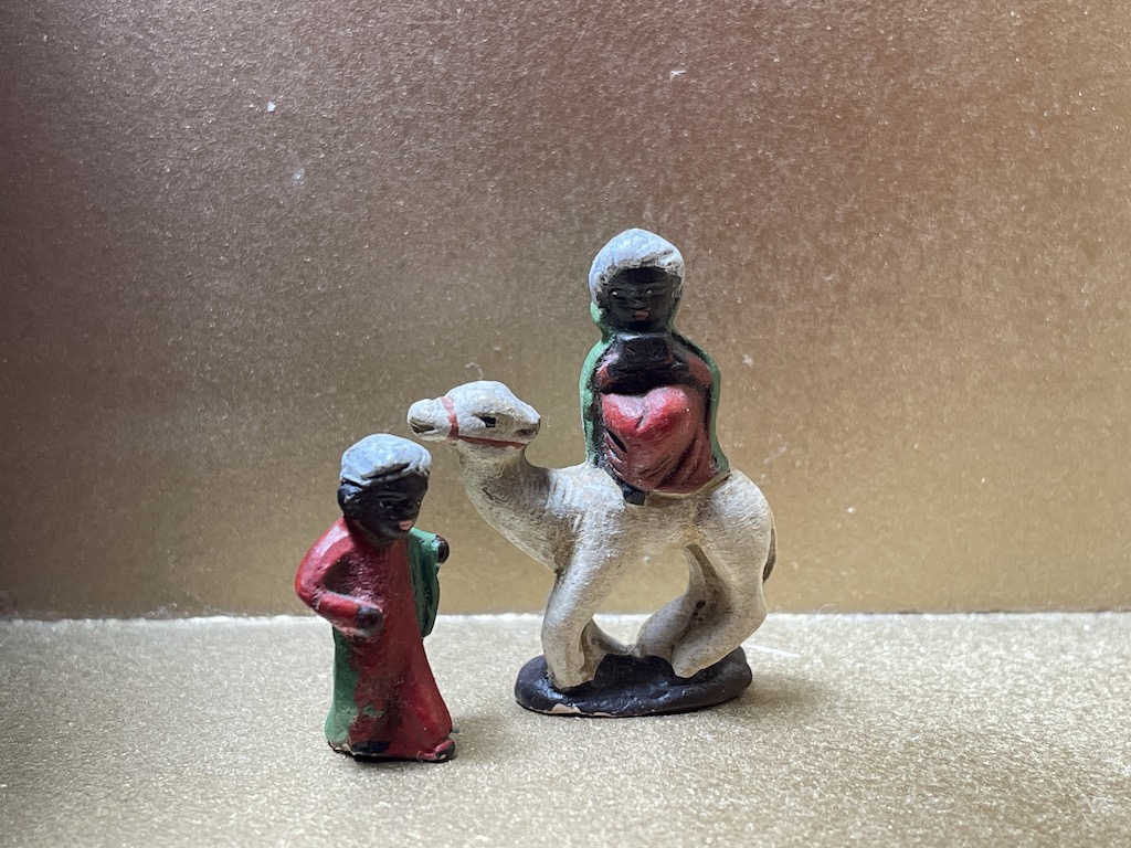 La figura que aporta Félix y que completa con el libro Vicent, me decanto por que sea una figura de los talleres de Serrano, que aún se les puede preguntar porque están en activo... y las razones ya las da Félix algo más arriba: el uso de turbantes, la fisonomía de las caras, las extremidades achaparradas (fijaros en las fotos posteriores, y la esbeltez en las figuras)...