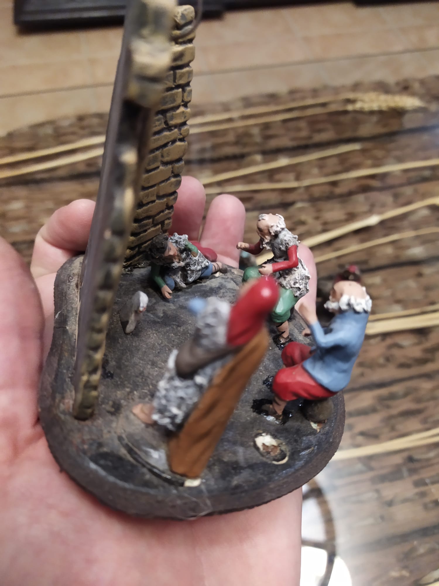 En segundo lugar, la miniatura que nos presenta Tunito, es un pequeño espacio de preciosos detalles, con una minuciosidad muy cuidada... gracias por compartirla... fijate que ha llevado a Félix a descubrir que contaba con unas figuras de Ortigas sin sellar en casa... posiblemente formaran parte de la tapadera de una olla o vasija, he visto algunas de formato mediano, que en el interior albergaba el Misterio con pastores y Reyes adoradores y en la tapa se resolvía la decoración con la escena de la anunciación...