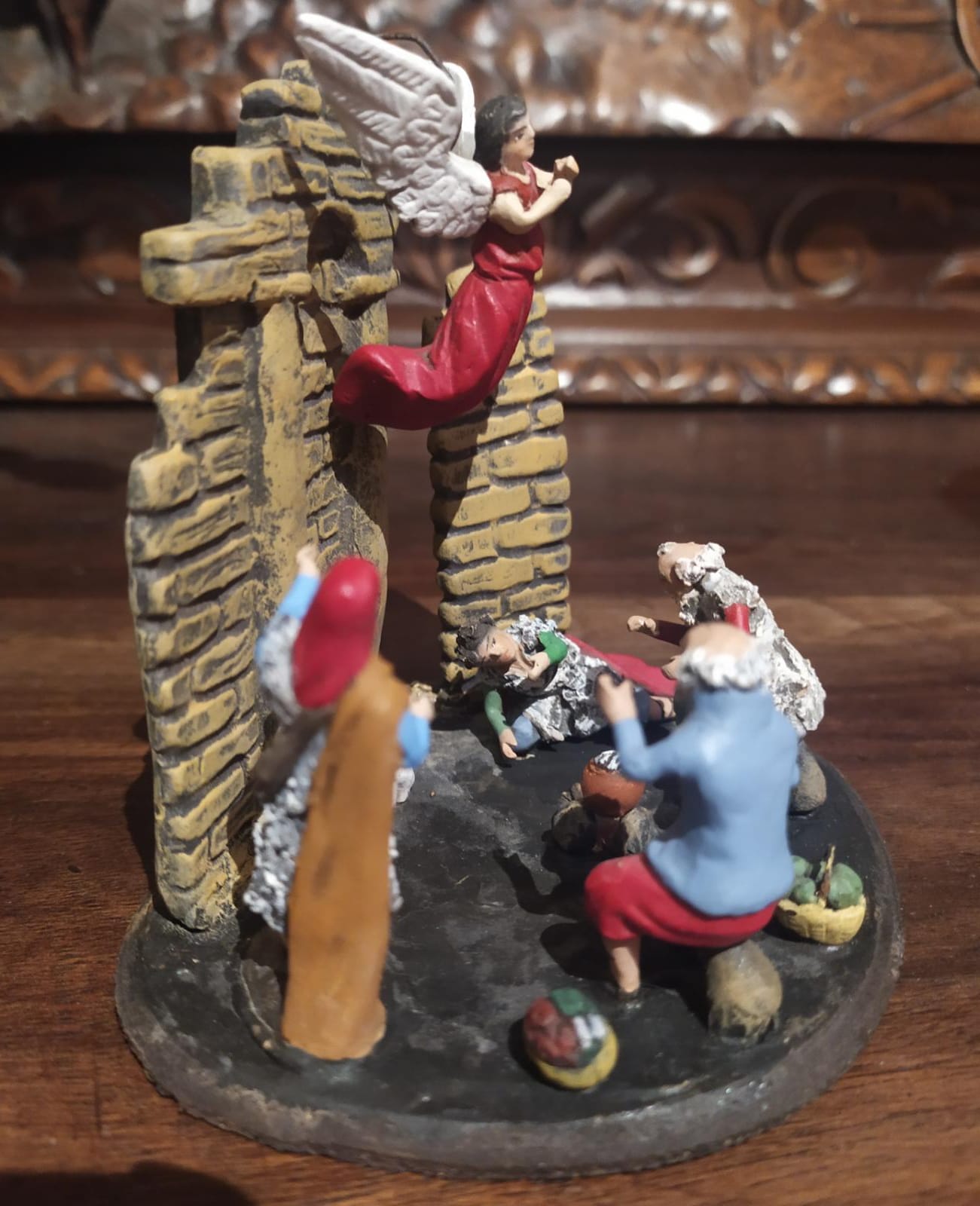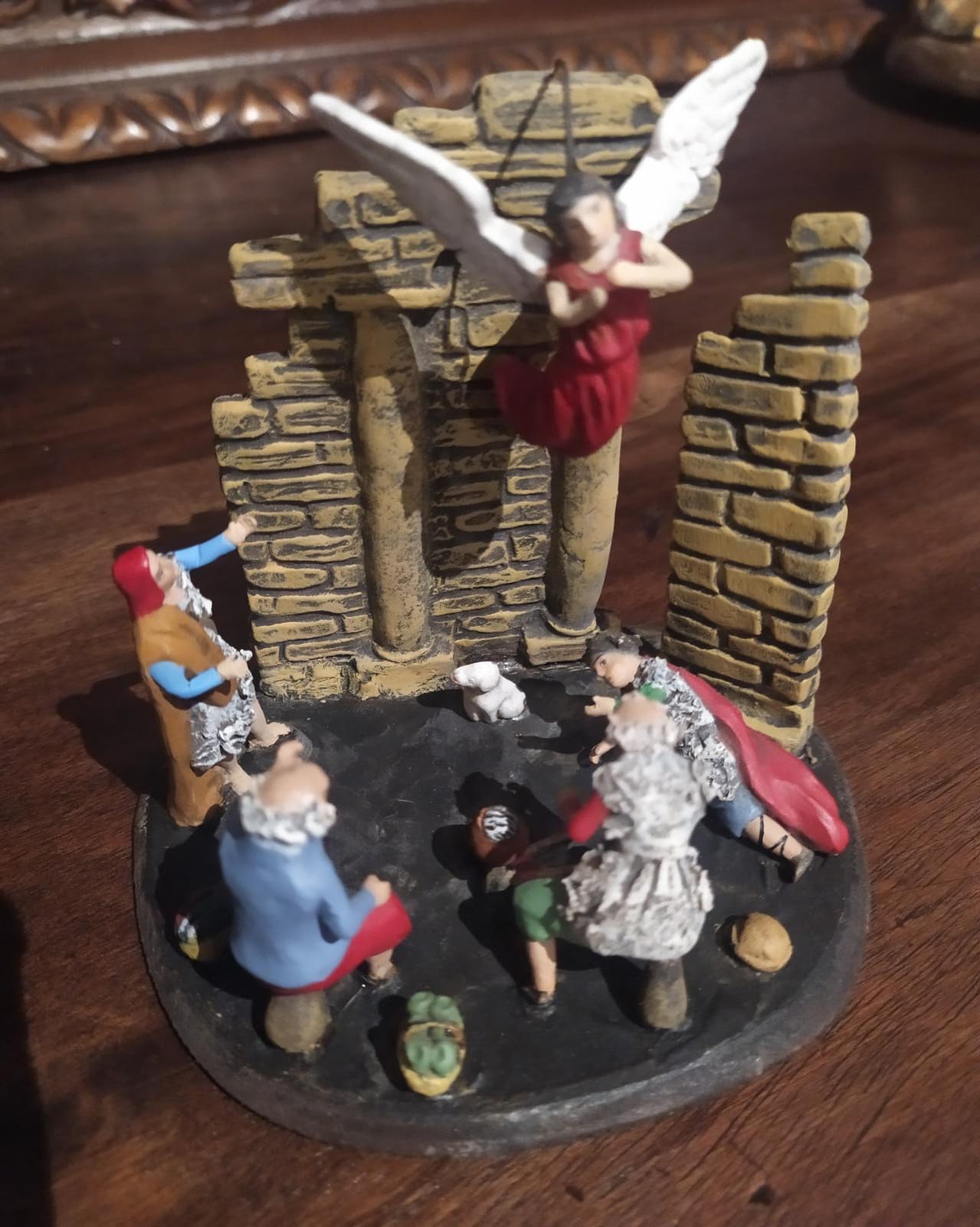 Despues de un proceso de limpieza, porque realmente lo peor de todo era la suciedad acumulada. Recuerdo que el pastor sentado con perro, entre el pie izquierdo y la túnica tenía trozos de periódicos mezclados con años de polvo y tierra acumulada... Pues eso, limpieza, y unos retoques superficiales, un brazo roto... y unas jornadas entretenidas en el primer verano de la pandemia.