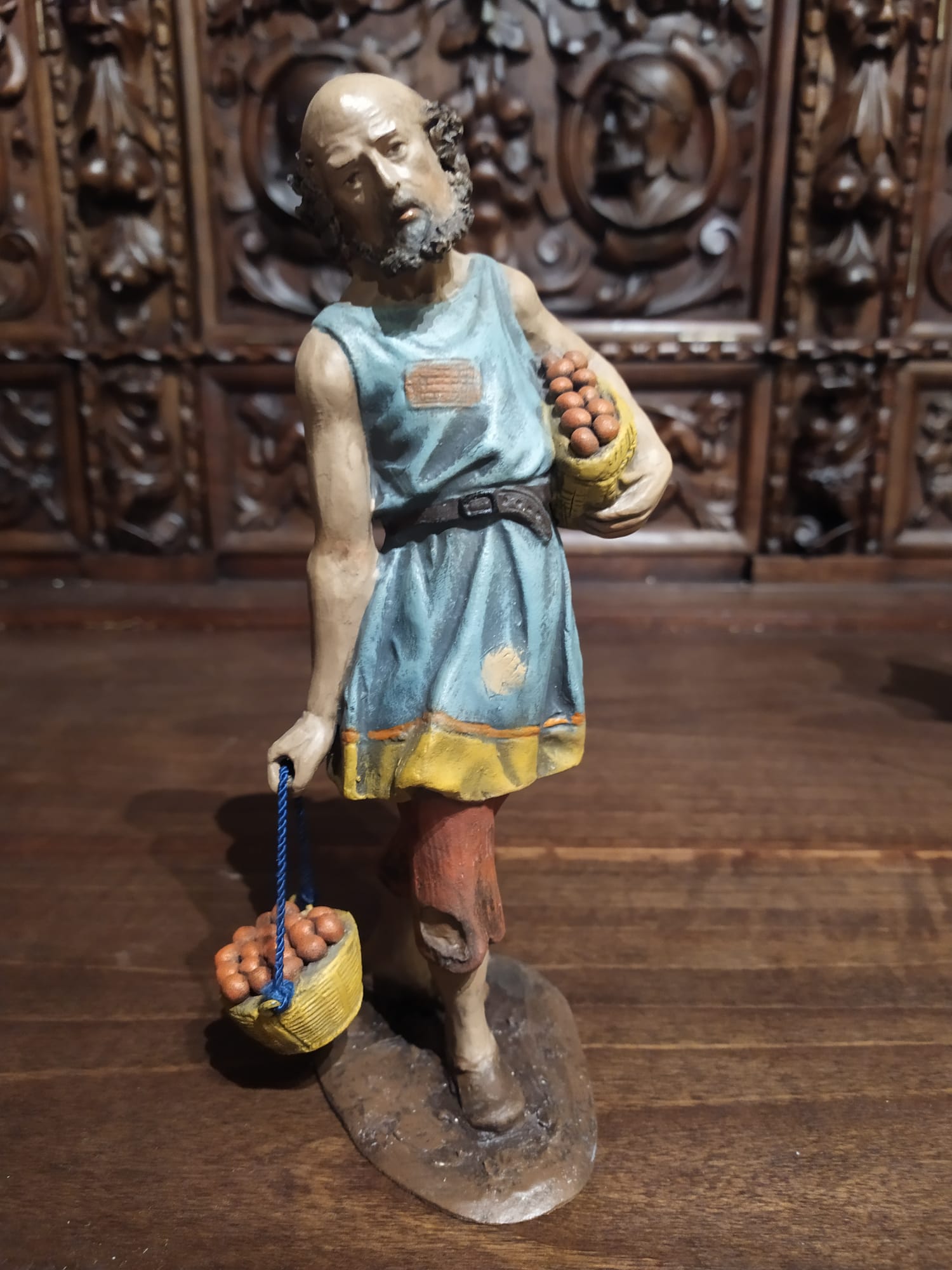 Y respecto de la duda de Félix original en cuestión... me reafirmo y estoy totalmente de acuerdo con lo que nos dice Vicent: " Con respecto a su parecido con la figura sin autoría de este hilo, en mi opinión, puede admitirse un parecido en la barba y la cara, pero ni la policromía ni la textura y disposición de la pelliza me recuerdan a las figuras murcianas."