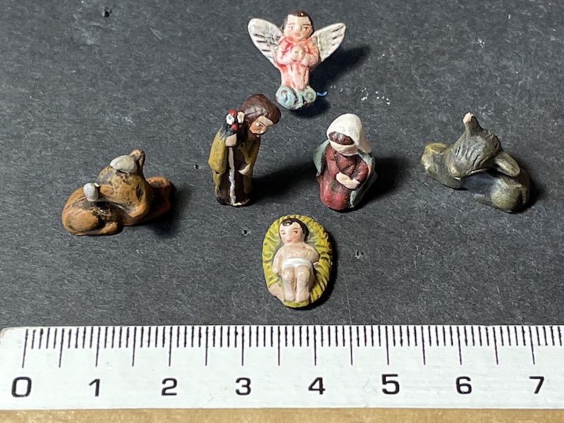 IMG_1399.JPG (135KB - 110 descargas)La Colección Malkior va creciendo... aunque sea gota a gota... aunque el tamaño sea pequeño. Os presento un juego de figuras de pequeño formato (2cm) que consta de Misterio completo y un juego de seis pastores, cuatro en pie y dos adorando. Está en muy buen estado (creo que un pequeño desconchón en la oreja de la mula), la minuicosidad es increible, está cuidado cada detalle en el modelado y la policromía... y los ojos brillan.