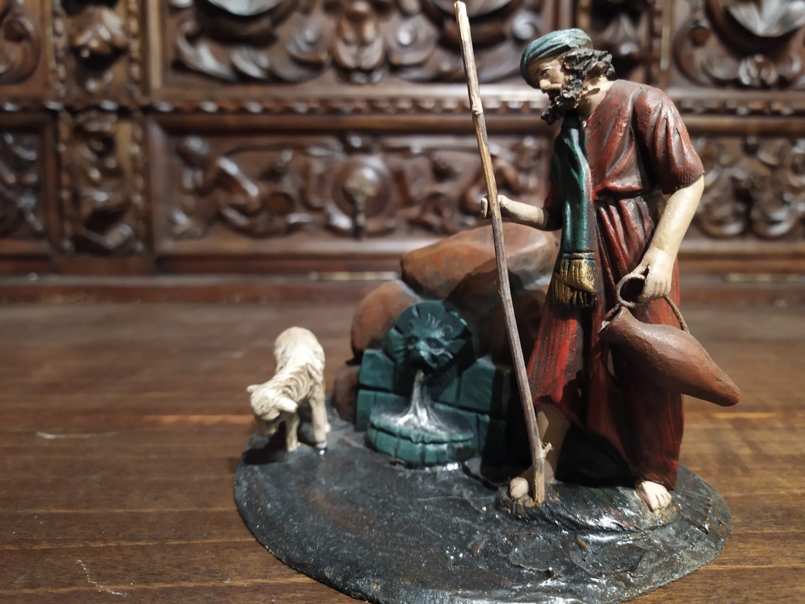 Despues de un proceso de limpieza, porque realmente lo peor de todo era la suciedad acumulada. Recuerdo que el pastor sentado con perro, entre el pie izquierdo y la túnica tenía trozos de periódicos mezclados con años de polvo y tierra acumulada... Pues eso, limpieza, y unos retoques superficiales, un brazo roto... y unas jornadas entretenidas en el primer verano de la pandemia.