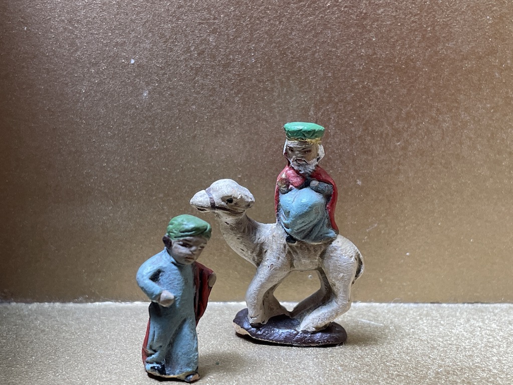 La figura que aporta Félix y que completa con el libro Vicent, me decanto por que sea una figura de los talleres de Serrano, que aún se les puede preguntar porque están en activo... y las razones ya las da Félix algo más arriba: el uso de turbantes, la fisonomía de las caras, las extremidades achaparradas (fijaros en las fotos posteriores, y la esbeltez en las figuras)...