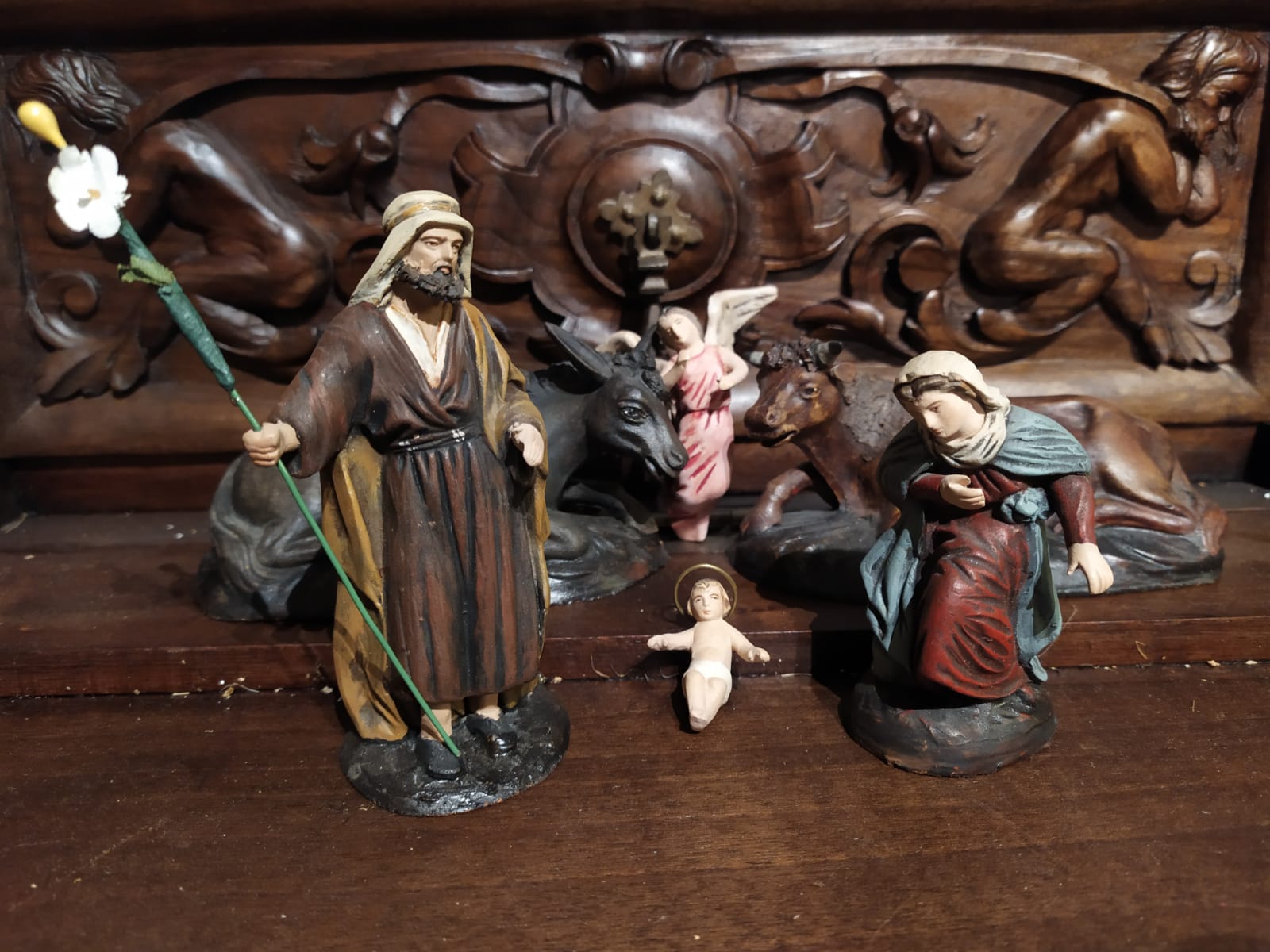 Despues de un proceso de limpieza, porque realmente lo peor de todo era la suciedad acumulada. Recuerdo que el pastor sentado con perro, entre el pie izquierdo y la túnica tenía trozos de periódicos mezclados con años de polvo y tierra acumulada... Pues eso, limpieza, y unos retoques superficiales, un brazo roto... y unas jornadas entretenidas en el primer verano de la pandemia.