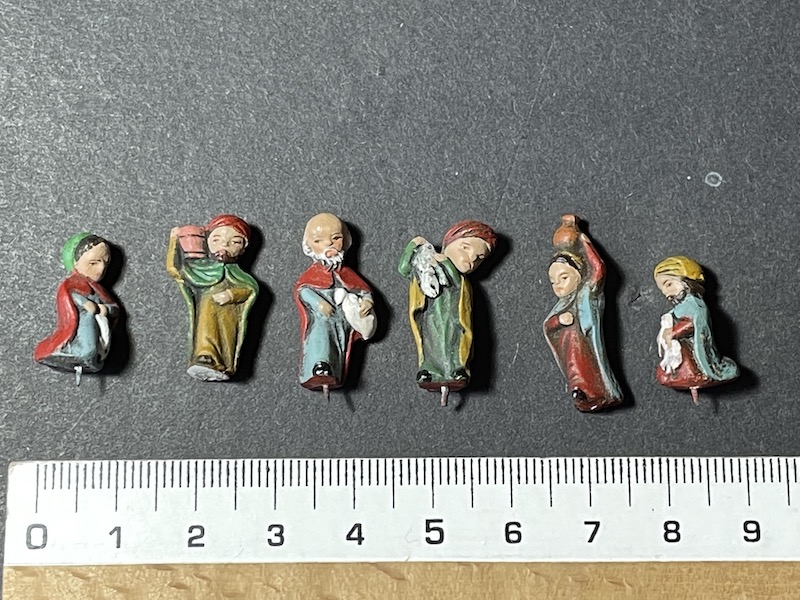 Son de la serie de 21, puede que tres de ellos formaran parte del mismo grupo de la anunciación a los pastores; se ven que son de épocas compositivas distintas, por las bases... pero fuera lo que fuere, en este formato de 21, las figuras de Ortigas (bueno, sus artesanos figuristas) ganan mucho protagonismo las características propias del taller. T exturas, escorzos, movimientos contenidos, miradas con ojos que brillan, quietud contenida, fuerza bruta, instantes congelados, figuras que narran escenas, escenas que han narrado muchas navidades.